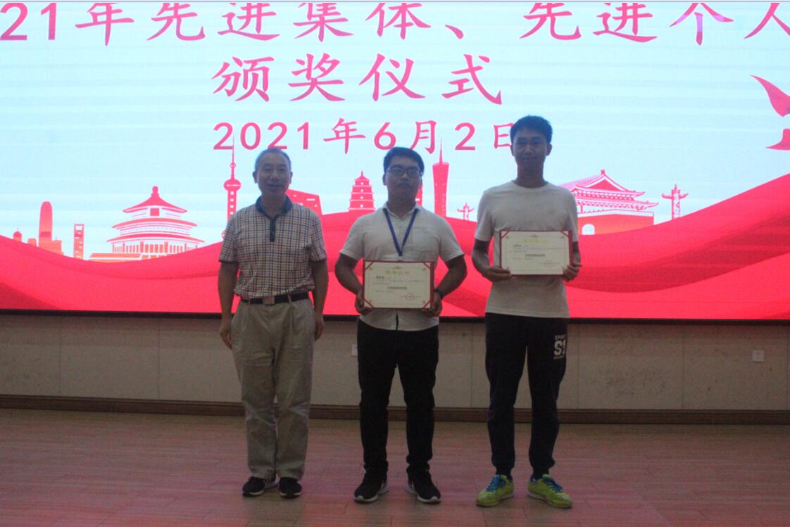 土木工程学院第一党支部书记龙群良为获奖学生颁奖
