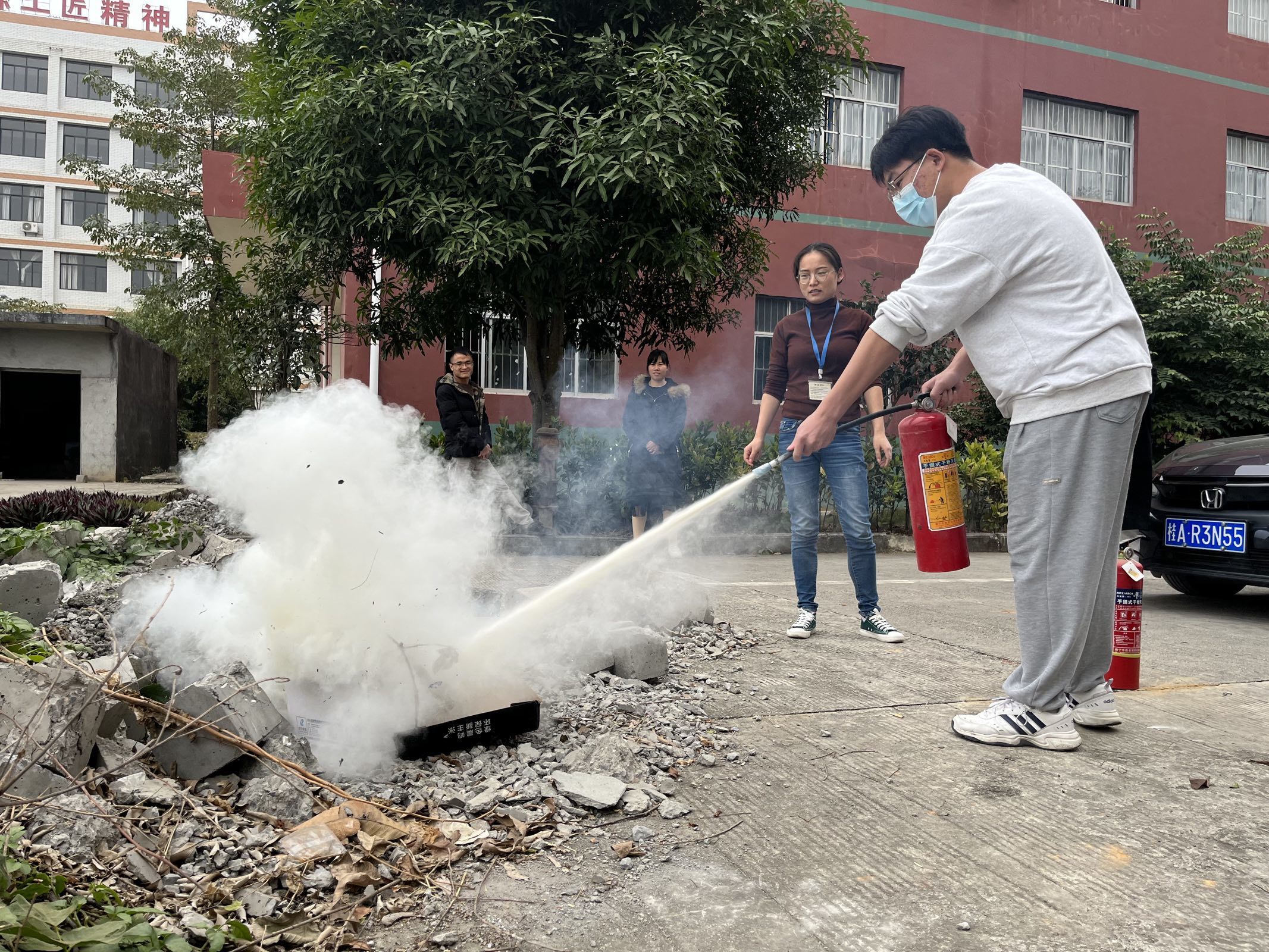 陈勇同学实战演示灭火器灭火