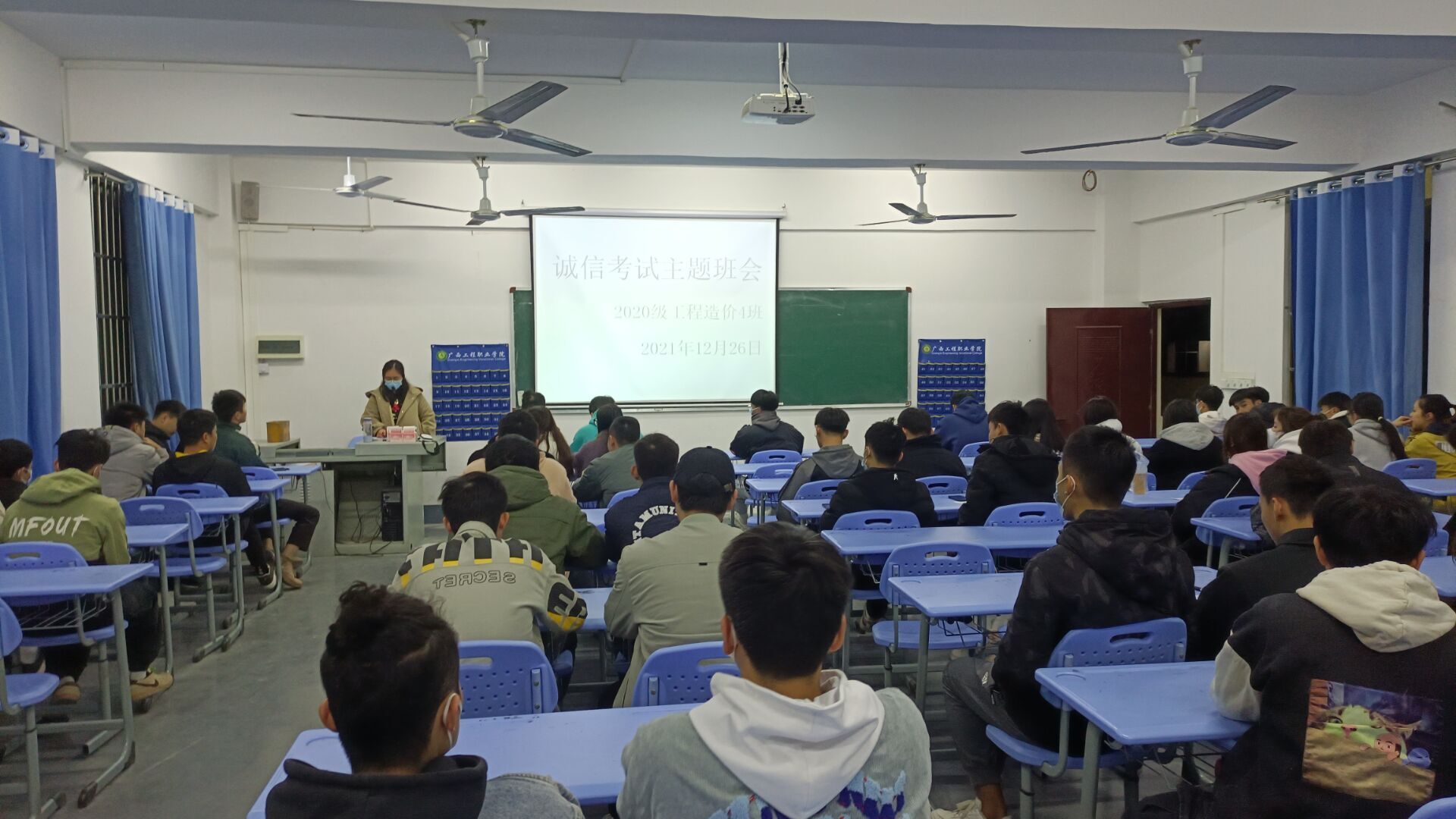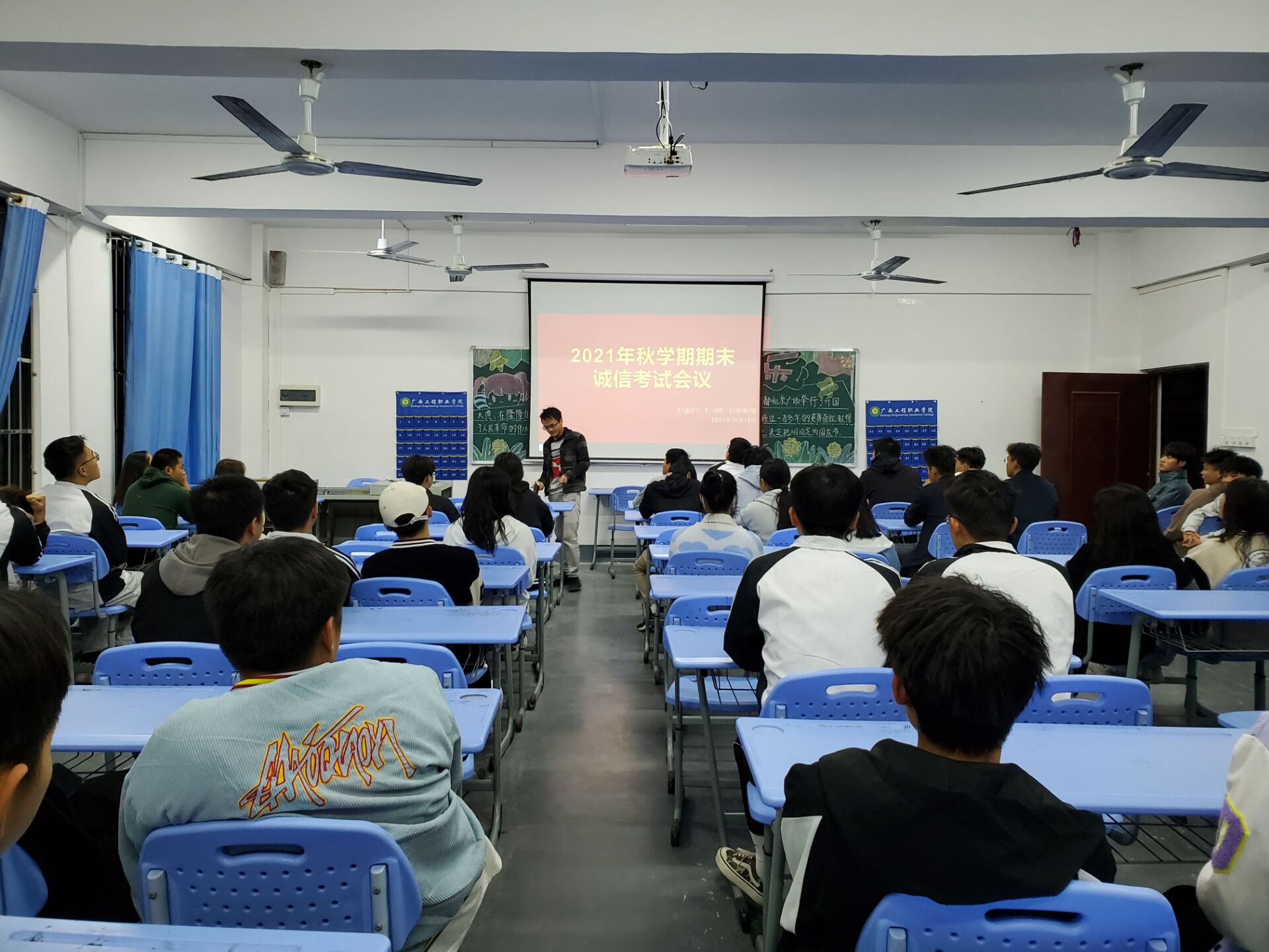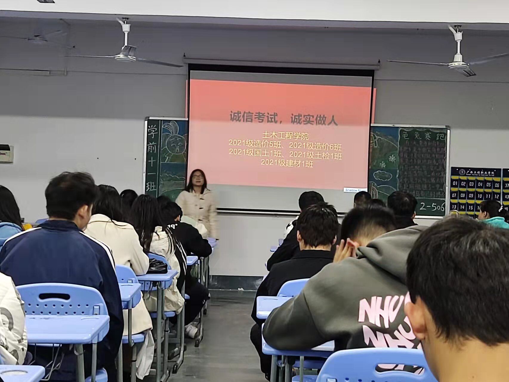 主题班会上各辅导员提醒同学们要牢记“拒绝作弊,诚信考试”,严格遵守各项考试规定,拒绝作弊行为。从自身做起,严格要求,用实际行动营造良好的学风、考风,塑造新时代大学生形象,努力创建纯洁公正的作风。会上辅导员宣读了关于诚信考试承诺书的内容,同学们都认真听讲,通过讲述真实的例子告诫同学们要诚信考试,各种因为考试作弊而被处分的案例让同学们清楚的认识到了考试作弊的危害。还通过讲述身边的例子来告诉同学们诚信对于一个人的学习、事业、交际的重要性,同学们听后受益匪浅。