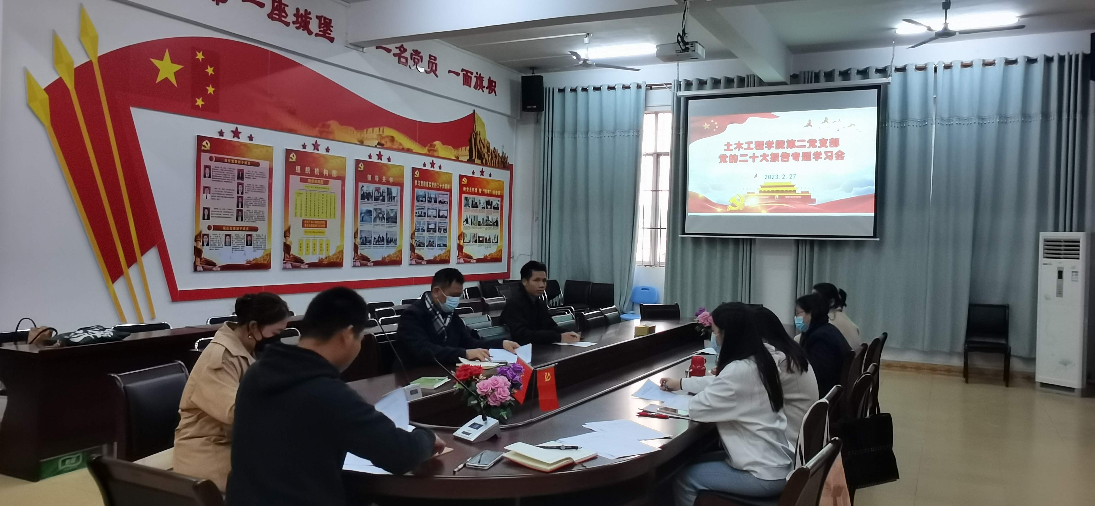 为深入学习贯彻党的二十大精神,坚持不懈用习近平新时代中国特色社会主义思想凝心铸魂,根据《中共百色市委教育工作委员会关于召开2022年度基层党组织组织生活会和开展民主评议党员的通知》(百教工委〔2023〕5号)和《中共beat365唯一官网委员会关于召开2022年度党支部组织生活会和开展民主评议党员的通知》(桂工程院党〔2023〕17号)的文件精神,土木工程学院第二党支部于2023年2月27日18:00召集支部教师党员在图书馆党员活动室开展组织生活会暨民主评议党员会议。本次会议由支部书记陈春任主持。