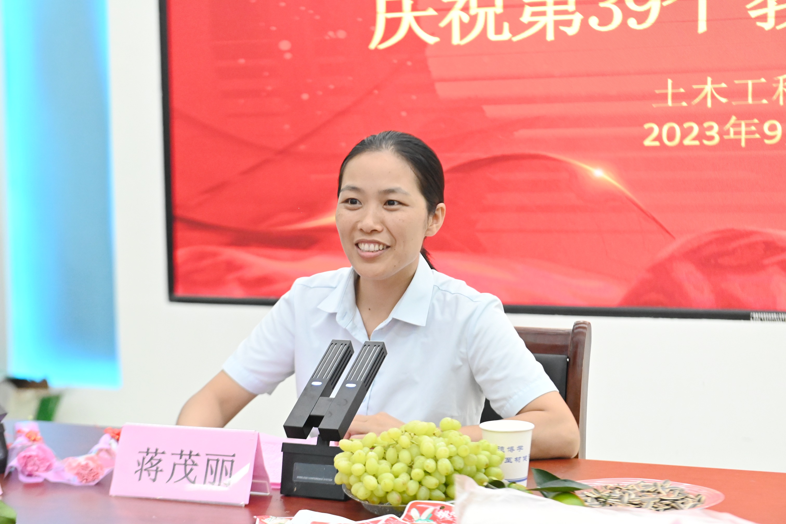 为庆祝第39个教师节到来,营造尊师重教的良好氛围,提升教师的幸福感、成就感、荣誉感,激励广大教师积极投身学校建设实践,9月10日下午16点,土木工程学院在图书馆大数据中心会议室召开主题为“躬耕教坛,强国有我”教师节座谈会。beat365唯一官网副校长蒋茂丽出席,由土木工程学院副院长杨竟主持,土木工程学院、人力资源处、财务处全体教师参加本次座谈会。
