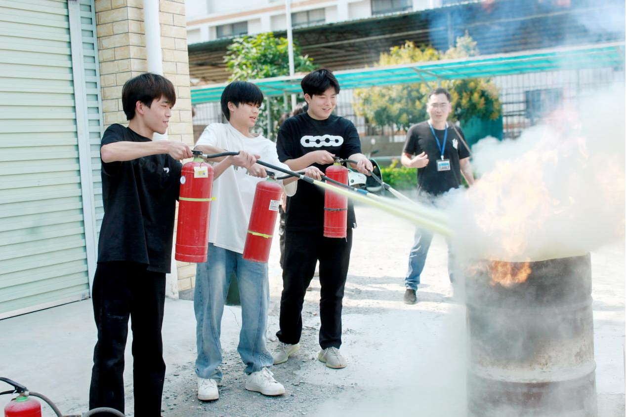 同时,学院还组织师生们进行了灭火器的使用演练。在专业人员的指导下,师生们学习了灭火器的正确使用方法,并亲自动手进行了灭火操作。通过实操演练,师生们不仅掌握了灭火器的使用技巧,还提高了应对火灾的实战能力。