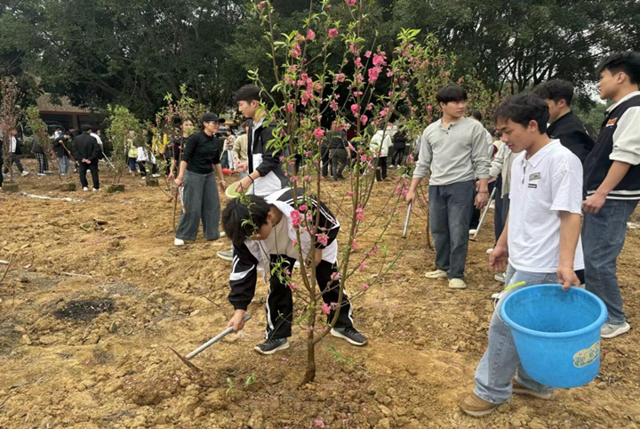 植树结束后,全体参与人员在桃花林前合影留念,记录下这一充满意义的时刻。