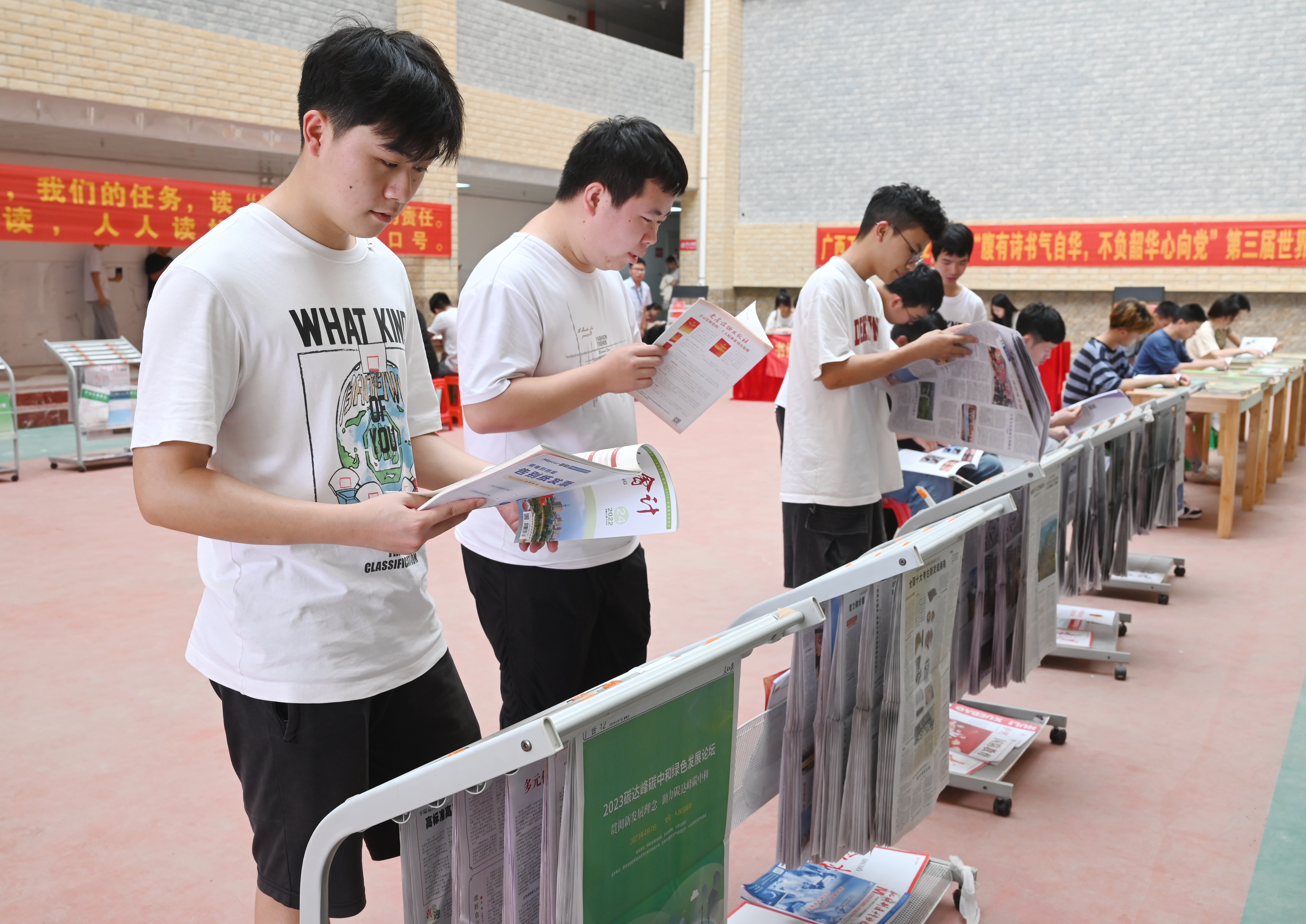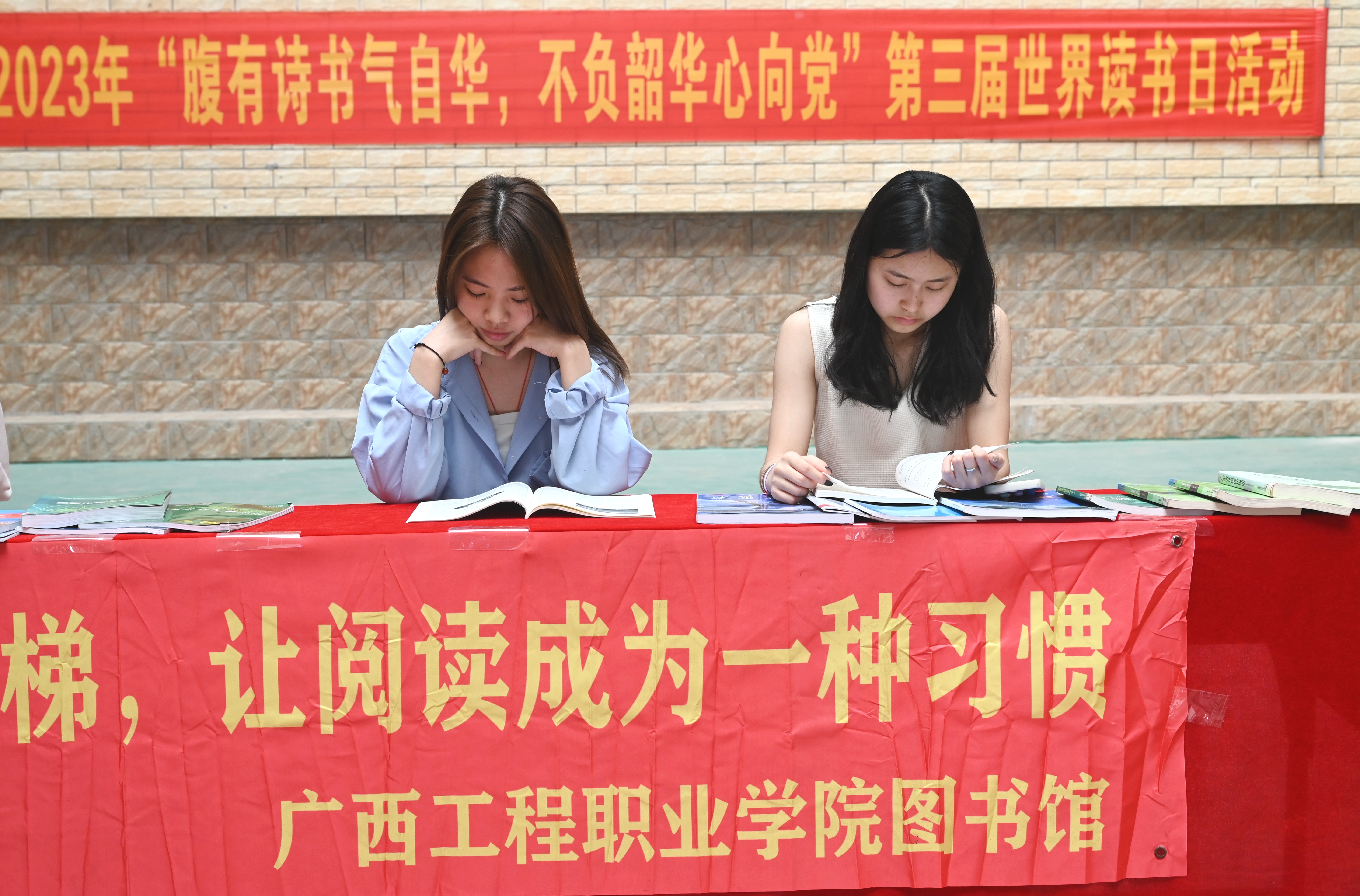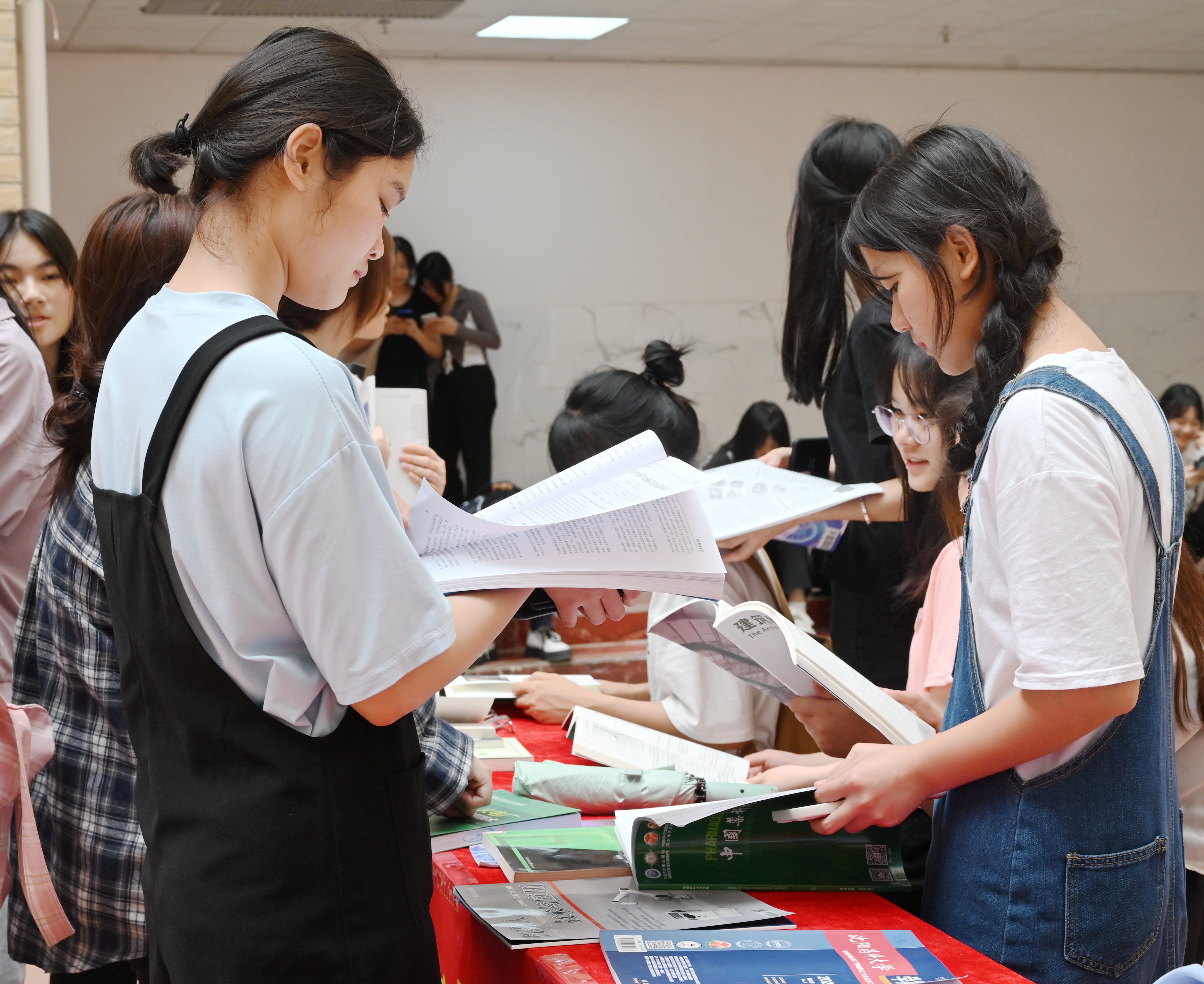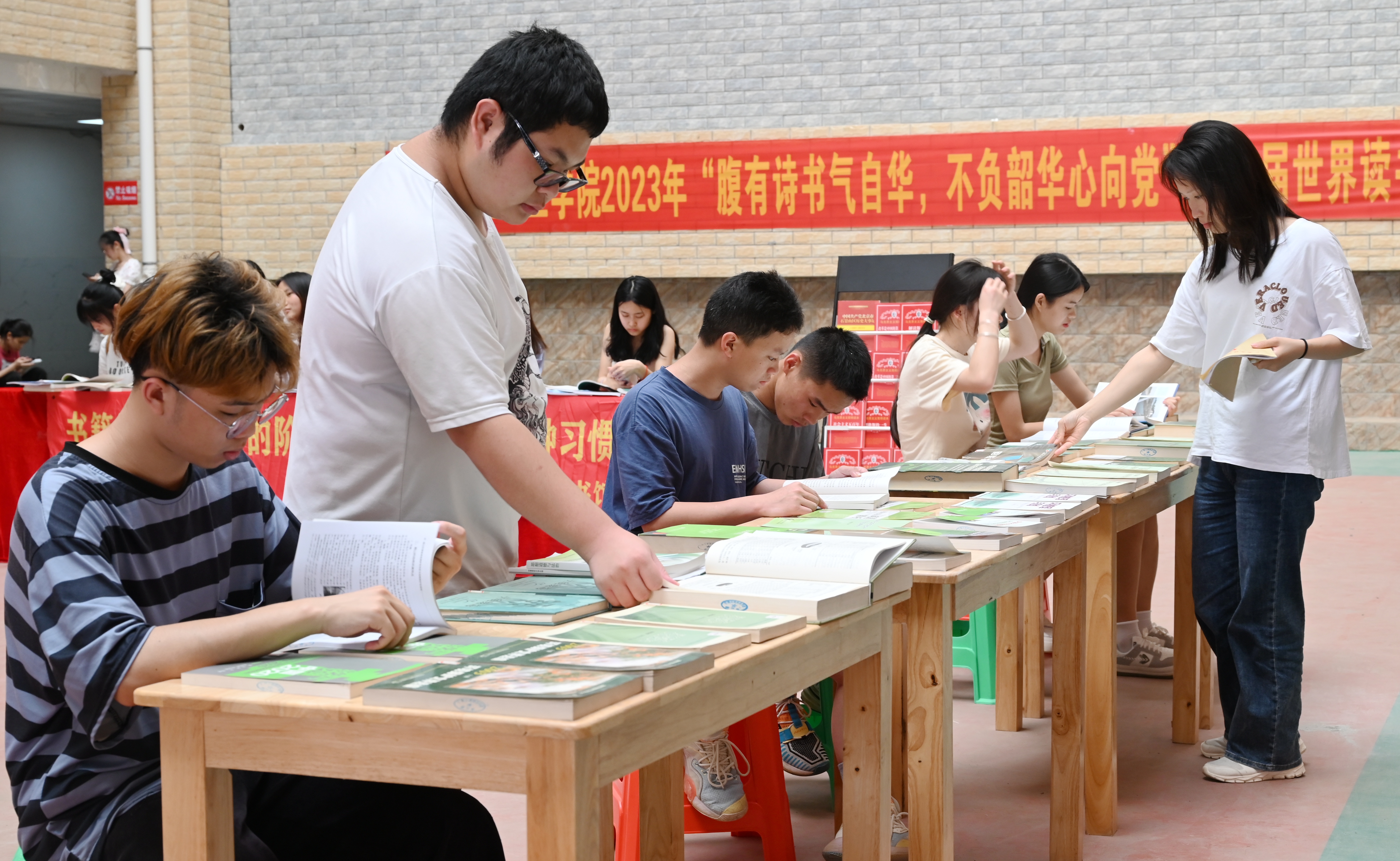 在图文信息大楼一楼大厅出展红色读物、经典文学作品、生态文明类书刊等,同学们在静心阅读,徜徉书海,品味书香。