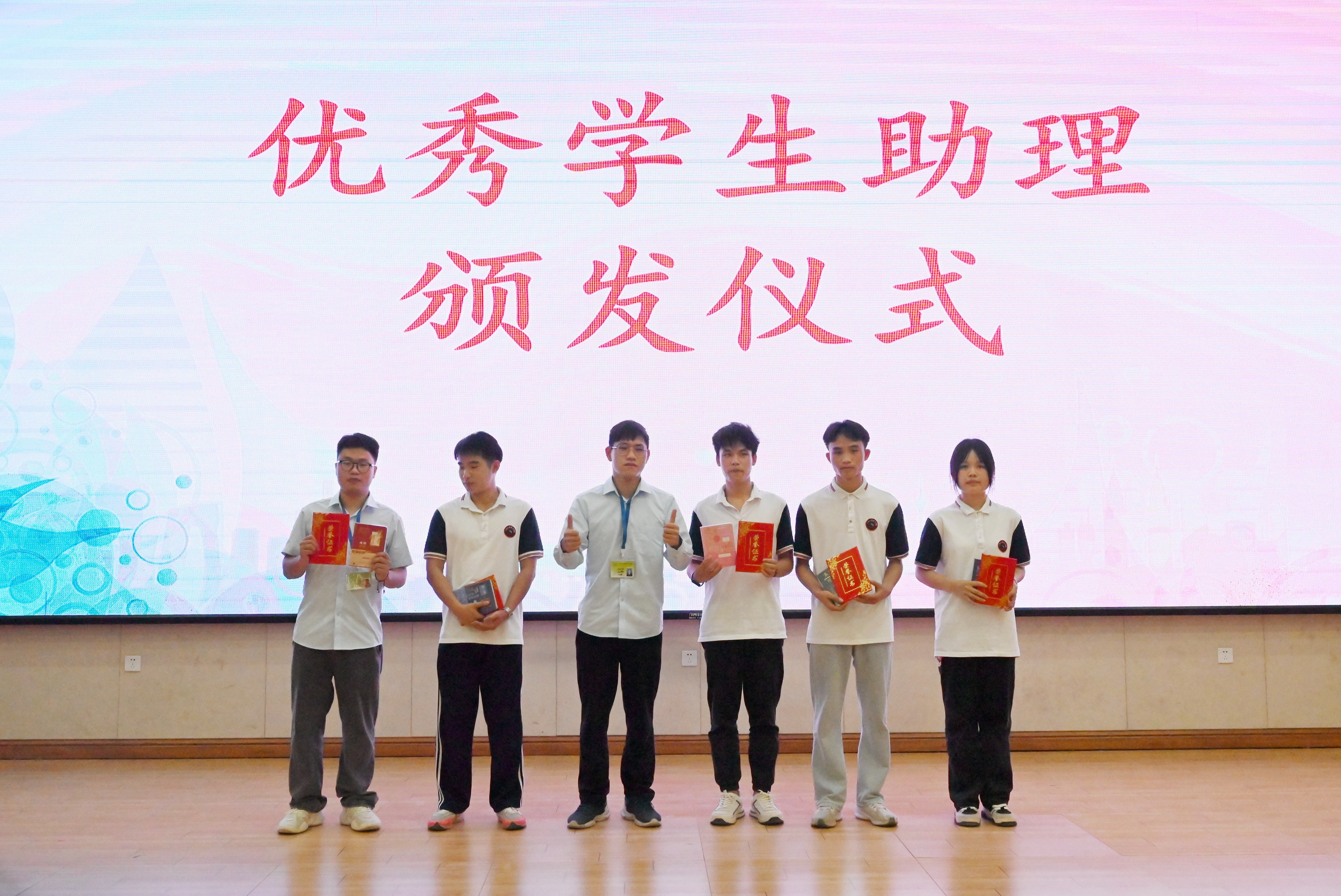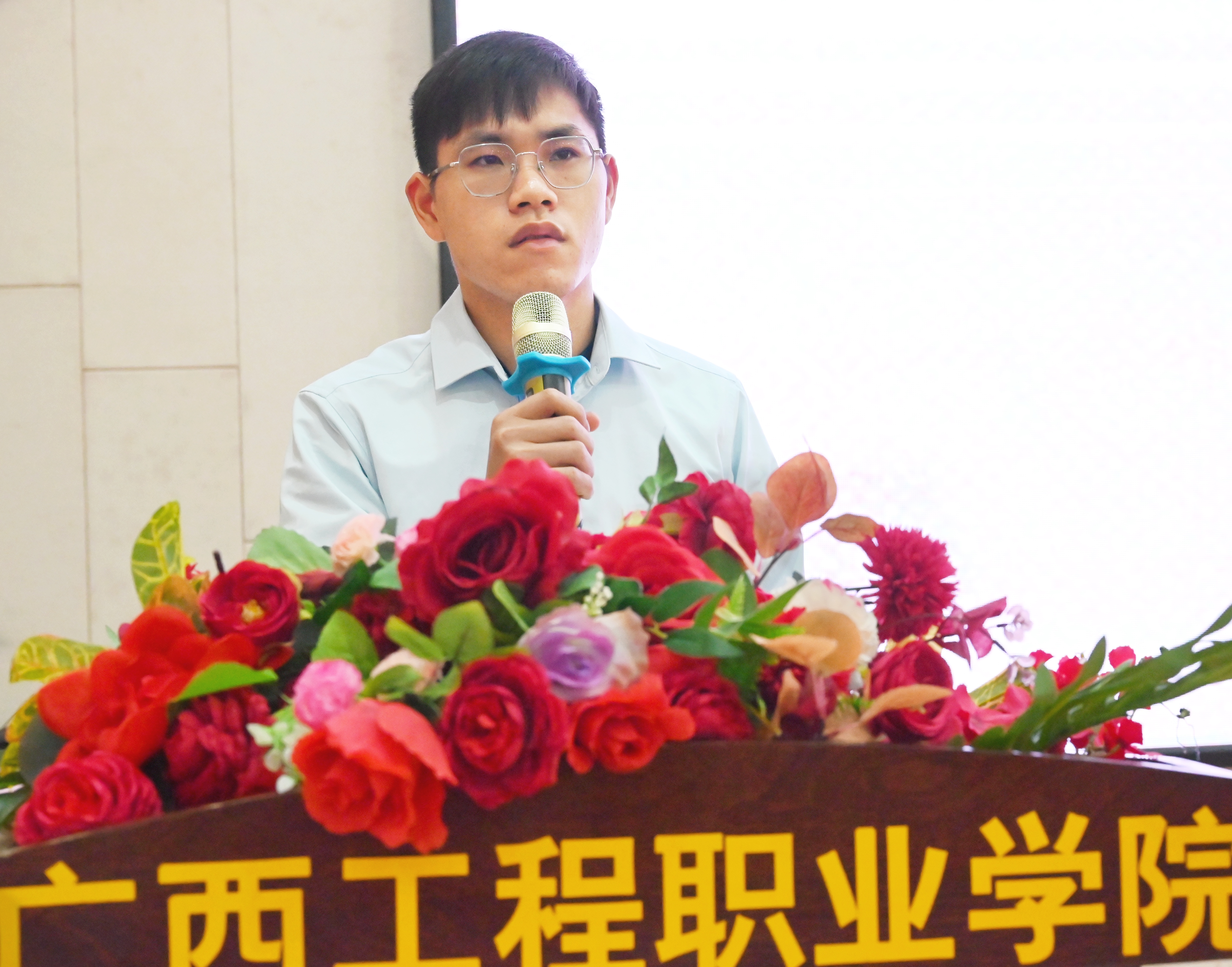 韦连飞老师为获得三等奖的覃建华、胡石柳、曹一心同学颁奖