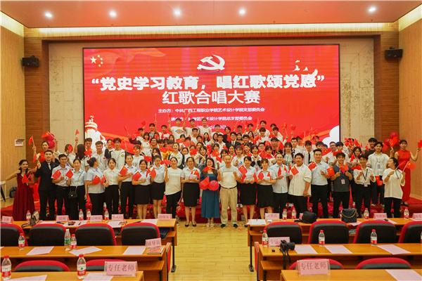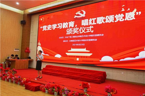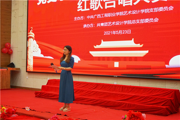 不忘初心、牢记使命,一百年风雨兼程,一百年岁月如歌,为喜迎建党一百周年,2021年5月23日晚,艺术设计学院党支部在校图文信息大楼一楼报告厅举办了“党史学习教育,唱红歌颂党恩”红歌合唱活动。参加本次活动的领导有学校党委副书记、副校长胡细木副教授,校长助理黄秋霞,艺术设计学院党支部书记、副院长覃凤姣,党支部委员甘坤成、陆闲,党委统战部科长韦金松,艺术设计学院分团委书记潘翠萍老师、办公室主任王艳、教研室主任李花以及艺术设计学院的全体老师。