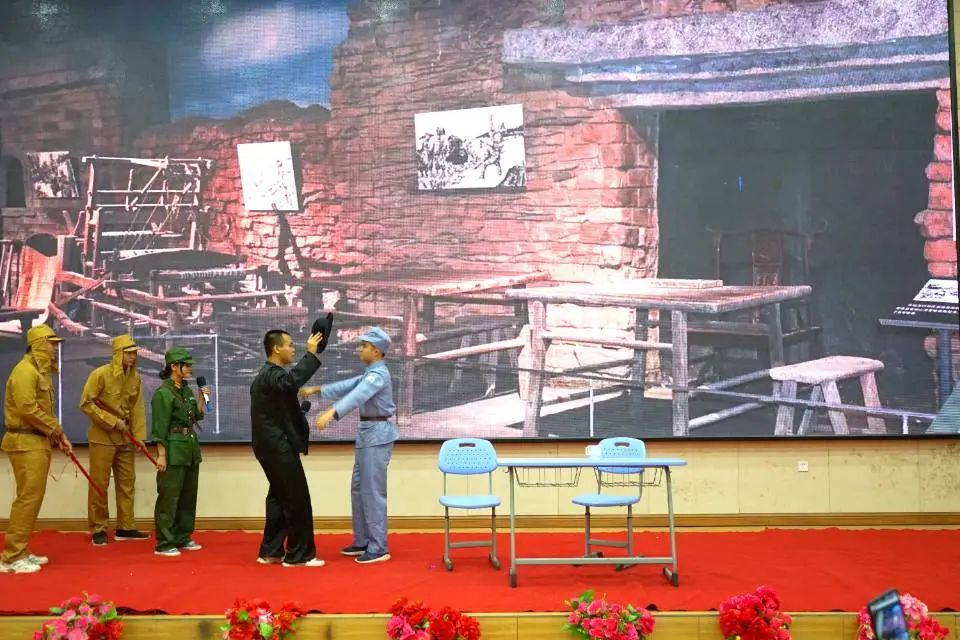 本次主题晚会以“重温党史,共演经典”为主题,将诗词朗诵、歌唱祖国、英雄故事场景再现等多种艺术形式相结合,为师生们带来一场党史学习教育盛宴。