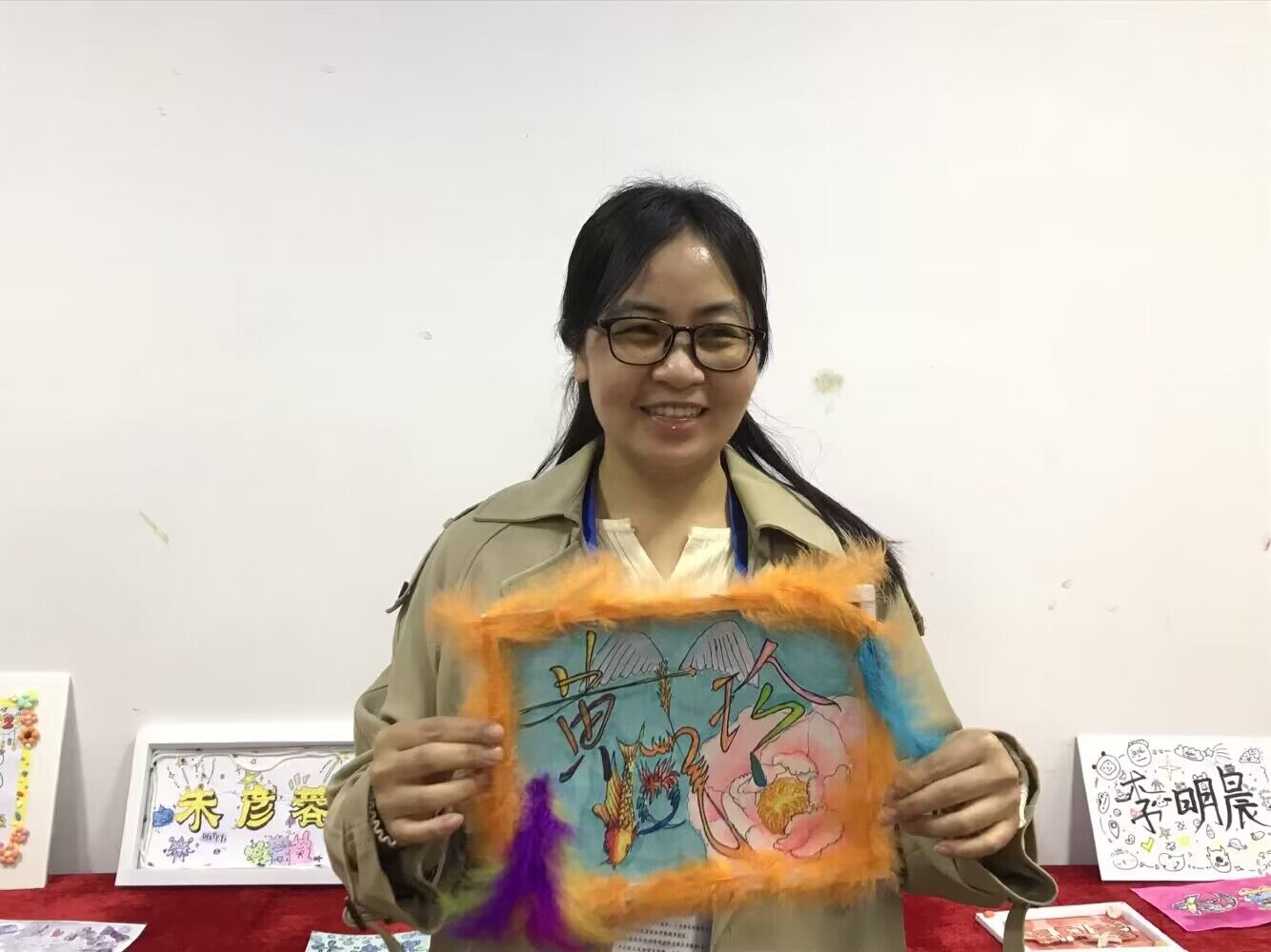 同学们以女教师名字进行艺术形式上的绘画创作,以画抒发情感,以作品描绘美好,来表达感恩全校女老师在背后的默默付出。