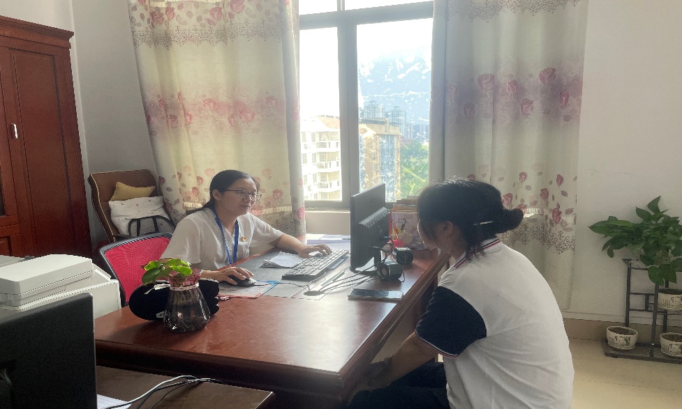 图为党支部书记覃凤姣同志对2024年发展对象人选进行谈话
