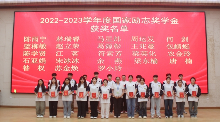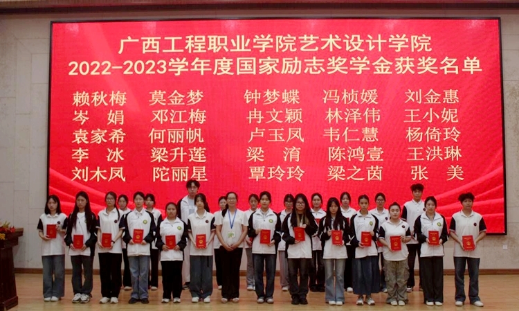 艺术设计学院党支部书记、院长覃凤姣为获2022-2023学年度国家励志奖学金的同学颁奖