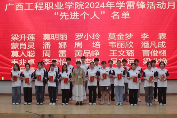 艺术设计学院陆倩吉老师为获得2024年学雷锋活动“先进集体”的班级代表颁发荣誉证书