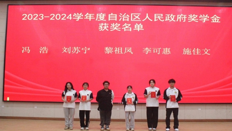 艺术设计学院党支部副书记赵志辉为获得2023-2024学年度自治区人民政府奖学金的同学颁奖