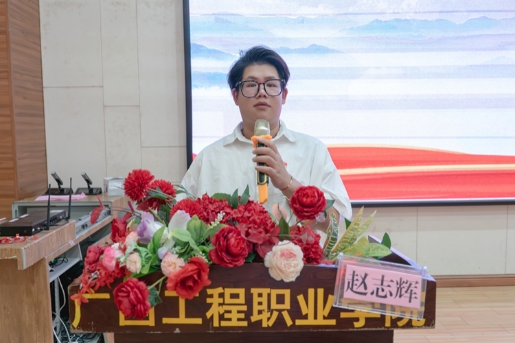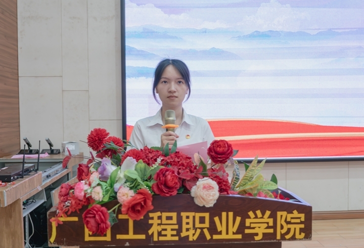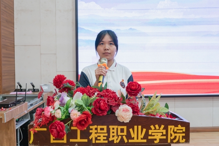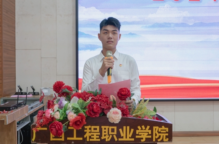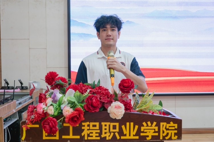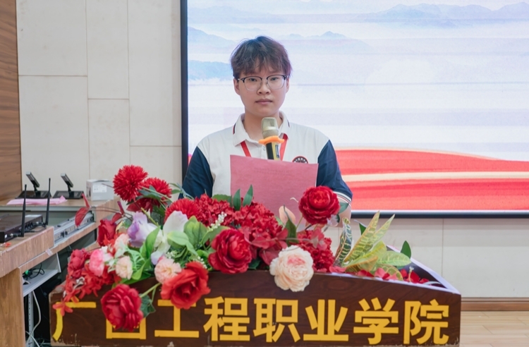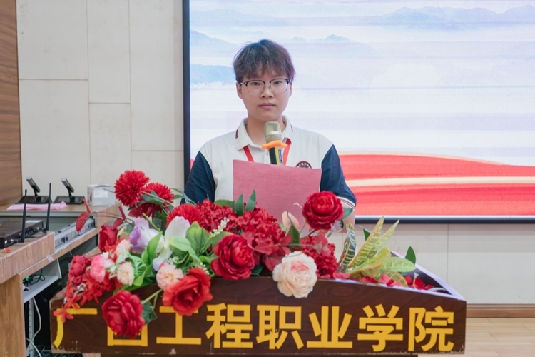 学生代表宣读倡议书,号召学院全体青年,怀抱梦想,勇担使命,脚踏实地,坚定不移跟党走,将个人的价值目标与新时代奋进的目标相结合,在不懈奋斗中实现人生价值。