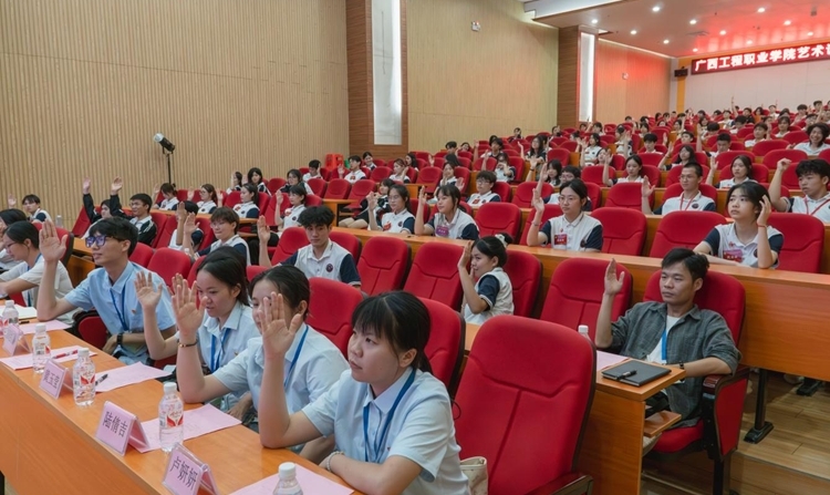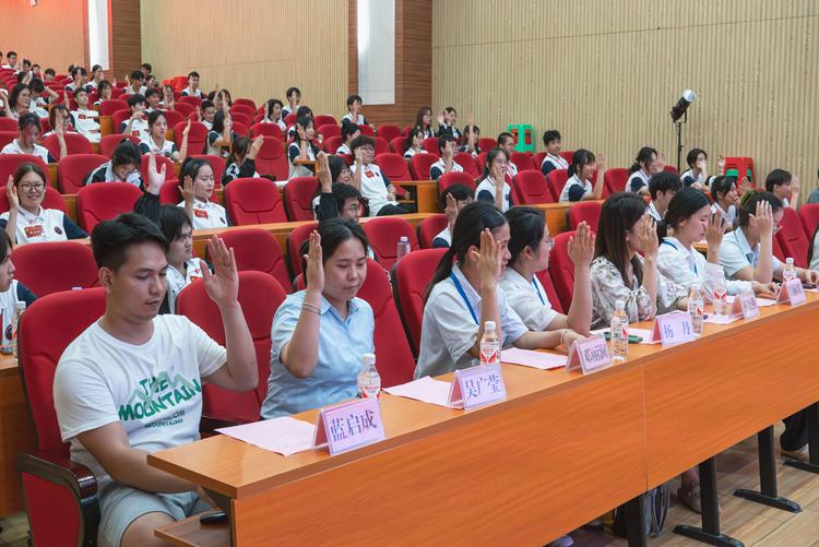 艺术设计学院党支部书记、院长覃凤姣,党支部副书记赵志辉、办公室主任赵金甜及全体辅导员出席本次大会,各班级共115名学生代表参加大会。本次大会由艺术设计学院分团委书记谢彩英主持。