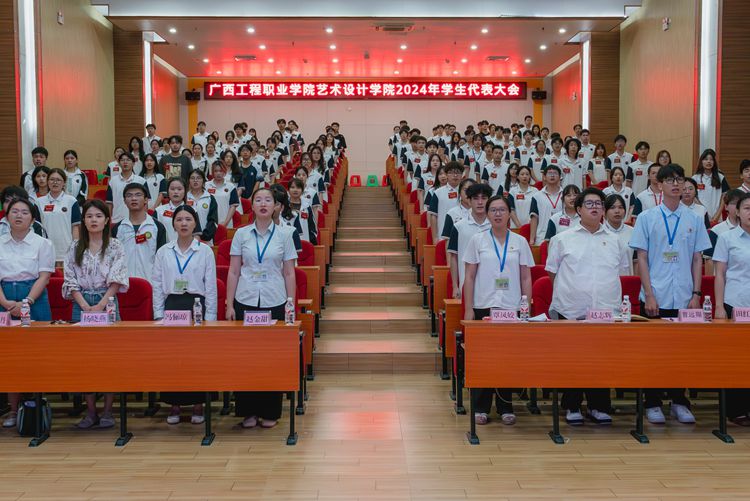 在庄严的国歌中,艺术设计学院2024年学生代表大会正式拉开帷幕