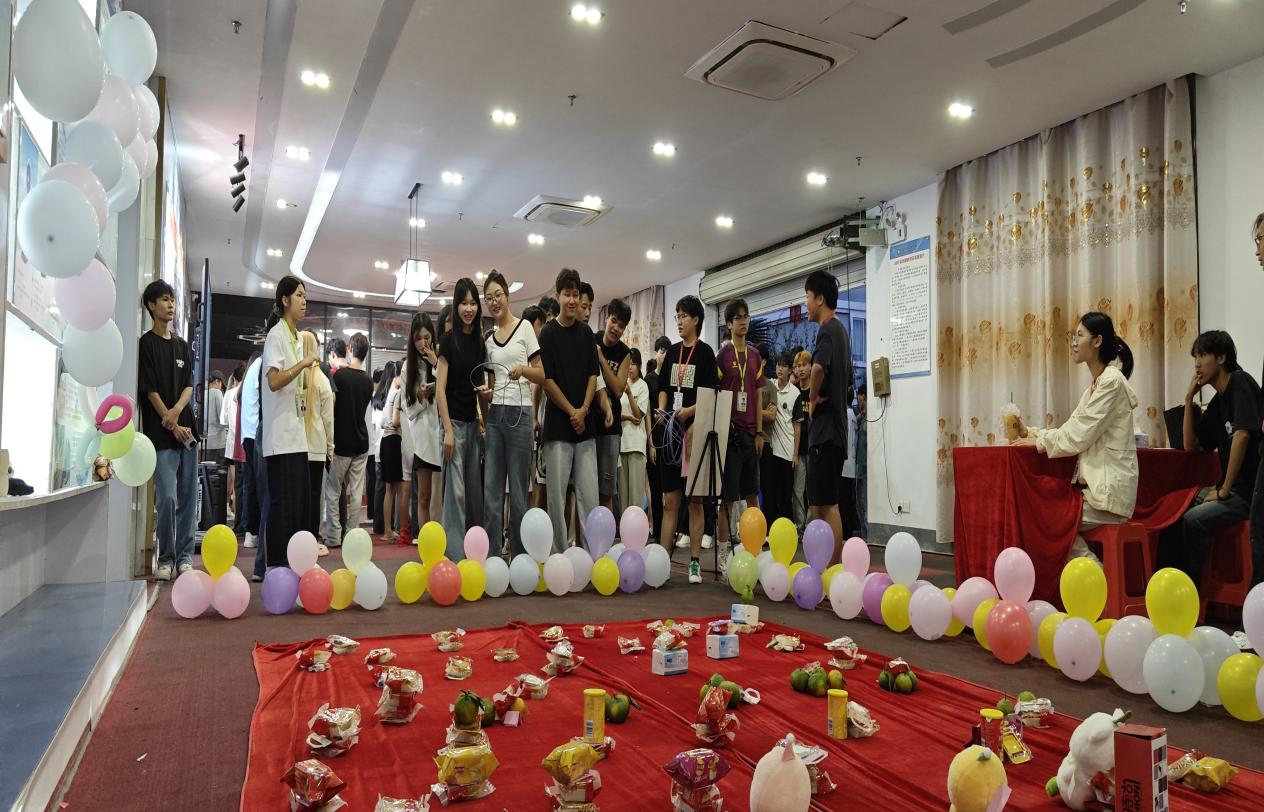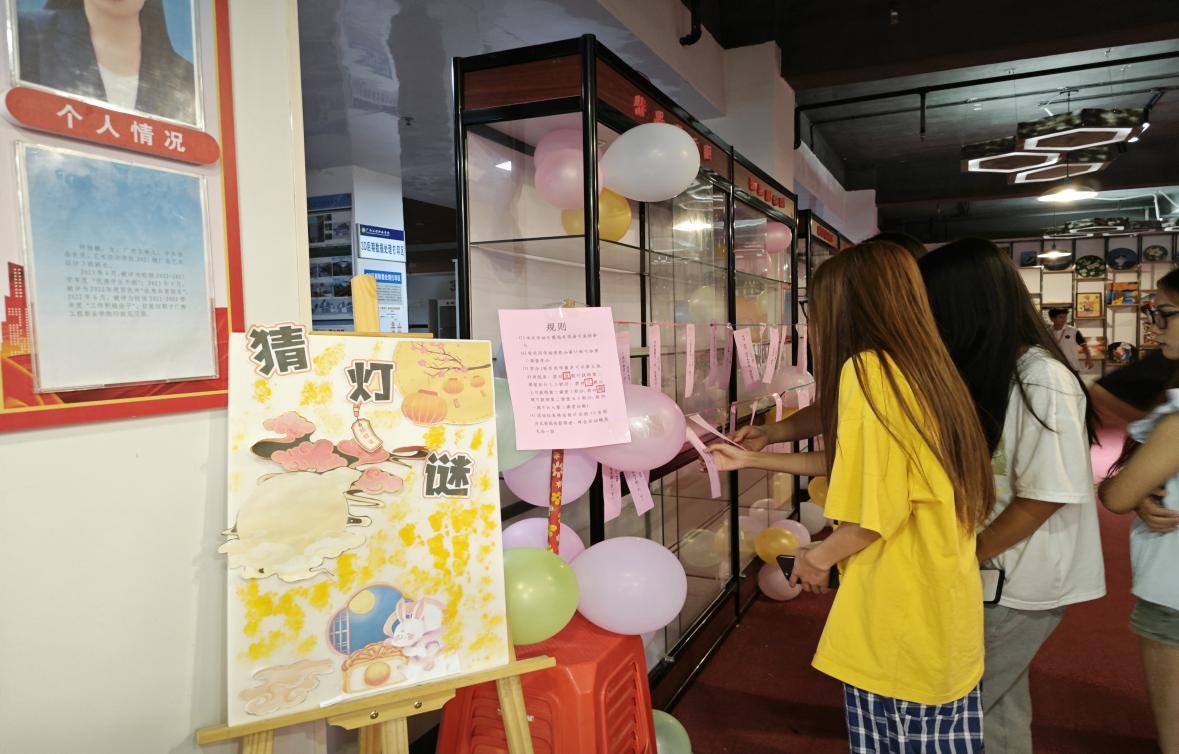 随着夜幕的缓缓降临,学院内张灯结彩,一派节日的喜庆景象。艺术设计学院精心布置了多个主题区域,包括“套圈”活动区、“猜灯谜”活动区、“月饼”发放区以及“奖品”兑换区等,每一处都充满了浓厚的节日氛围和创意元素,吸引了众多师生驻足参与。