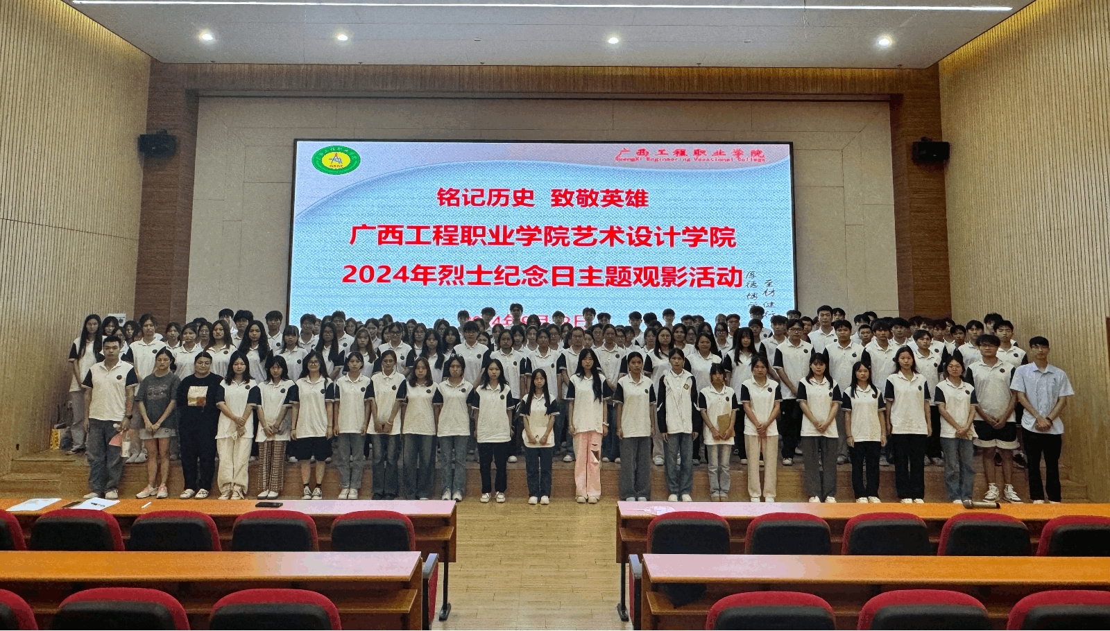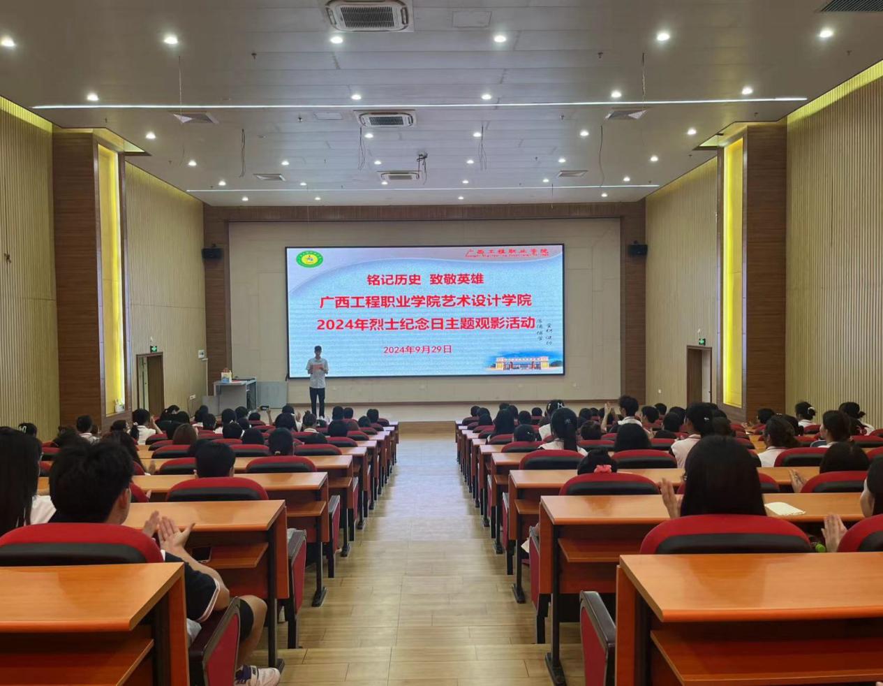 2024年9月29日,艺术设计学院党支部在学校图文信息大楼一楼报告开展了以“铭记历史,致敬英雄”为主题的观影活动,全体党员、发展对象、入党积极分子共同观看了红色经典影片《南京!南京!》。