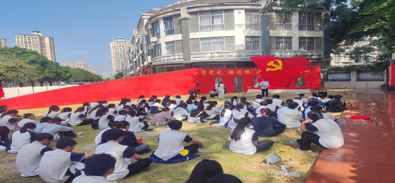 寻忆邓公足迹结束后,来到邓公山红色主题文化公园红色教育基地台阶左侧草地,由马克思主义学院杨文双老师给党员同志、发展对象、入党积极分子开展平果红色故事《七勇士》微党课学习。