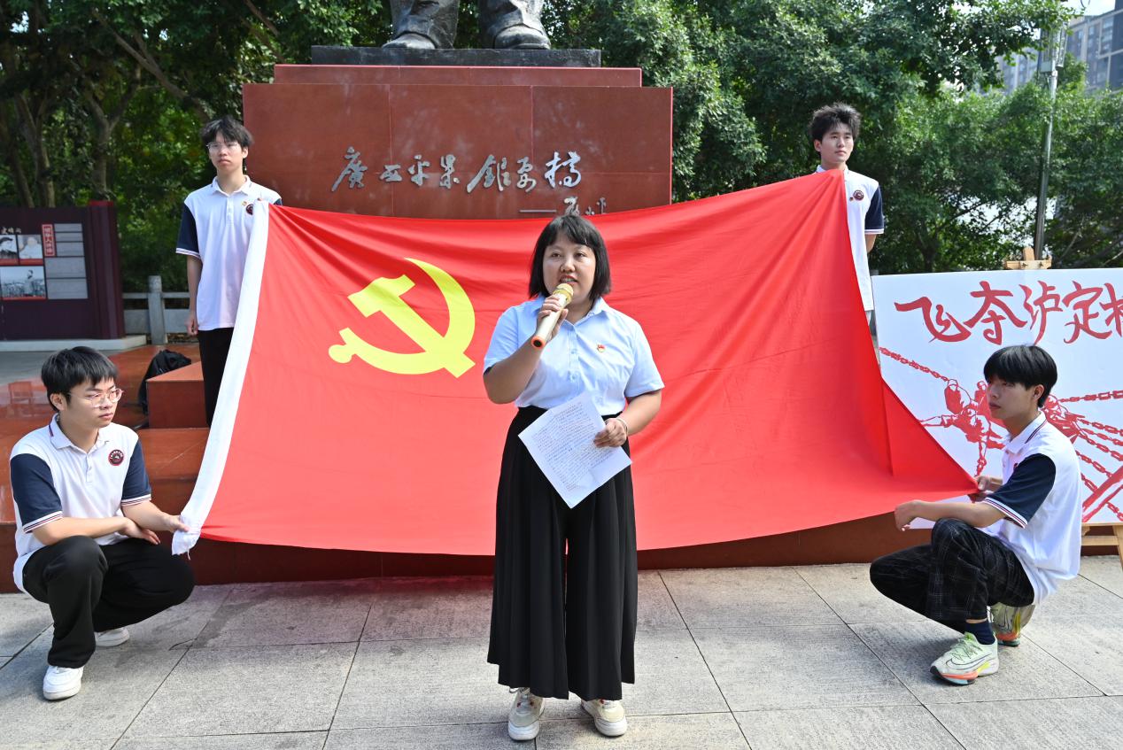 在邓小平铜像广场,学校党委副书记、校长罗艳妮讲话,她指出此次“红色基因体验行”专题研学活动不仅是一次参观学习之旅,更是一次精神洗礼和党性锤炼。通过实地参观体验和现场教学,学生们深刻感受到了革命先烈们的英勇事迹和崇高精神,进一步坚定了理想信念,增强了历史使命感和社会责任感。希望同学们以此次研学活动为契机,传承红色基因,弘扬红色精神,努力成为有理想、敢担当、能吃苦、肯奋斗的新时代好青年,为实现中华民族伟大复兴的中国梦贡献青春力量。