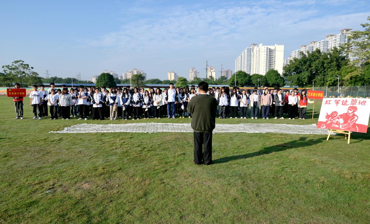 首先进行红军过草地关卡一活动,两组队长带领队员在固定网格区域按照匍匐前进的姿势穿过网格,体验红军过草地过程。红军过草地的故事给同学们带来了启示:团队合作和领导力是攻克难关的关键,只有凭借着意志的力量和不屈不挠的精神才能实现自己的目标,无论在什么时候都应该像红军一样,砥砺前行,永不言弃。