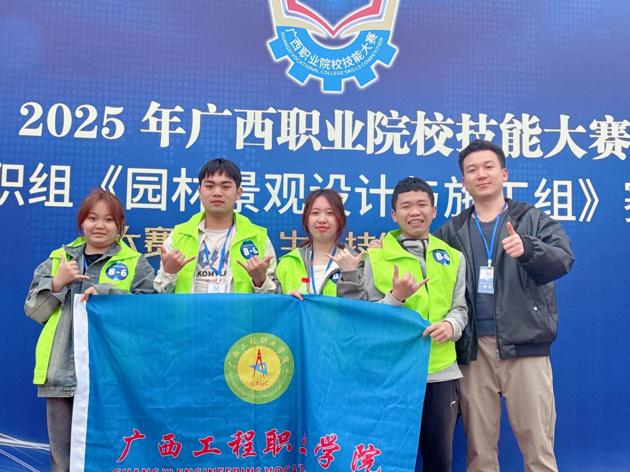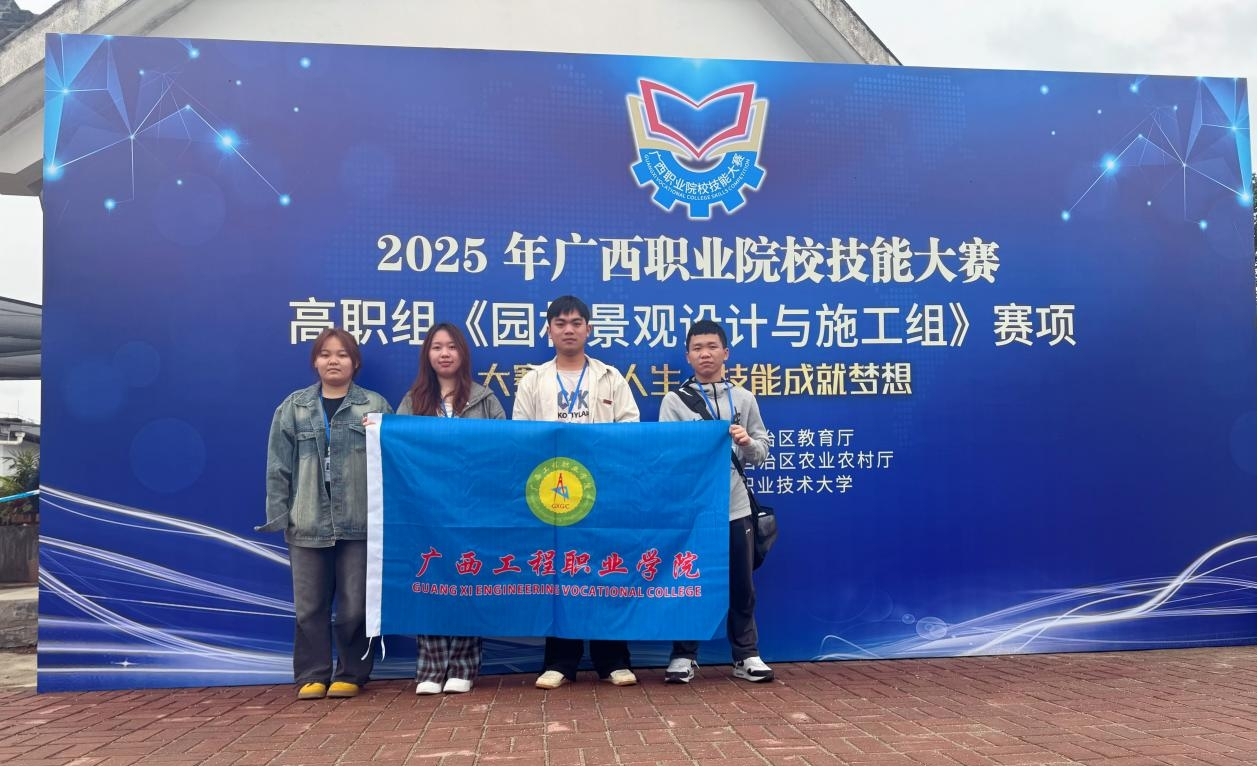 2025年3月14日—16日广西职业院校(高职组)《园林设计与施工》比赛在广西农业职业技术大学举办,来自全区15所职业院校的15支代表队同台竞技。艺术设计学院郑重老师带领建筑设计专业宋明龙、覃继挺、黎芷茵、蒙玉羽等4名同学参加了此次比赛。本次比赛分为技能操作与方案汇报两大环节,总时长60分钟。技能操作环节要求选手在60分钟内完成园林景观设计与施工,方案汇报环节则需在比赛时间内清晰阐述设计理念、技术难点及创新点。比赛内容全面考察选手的设计能力、实操水平和职业素养。