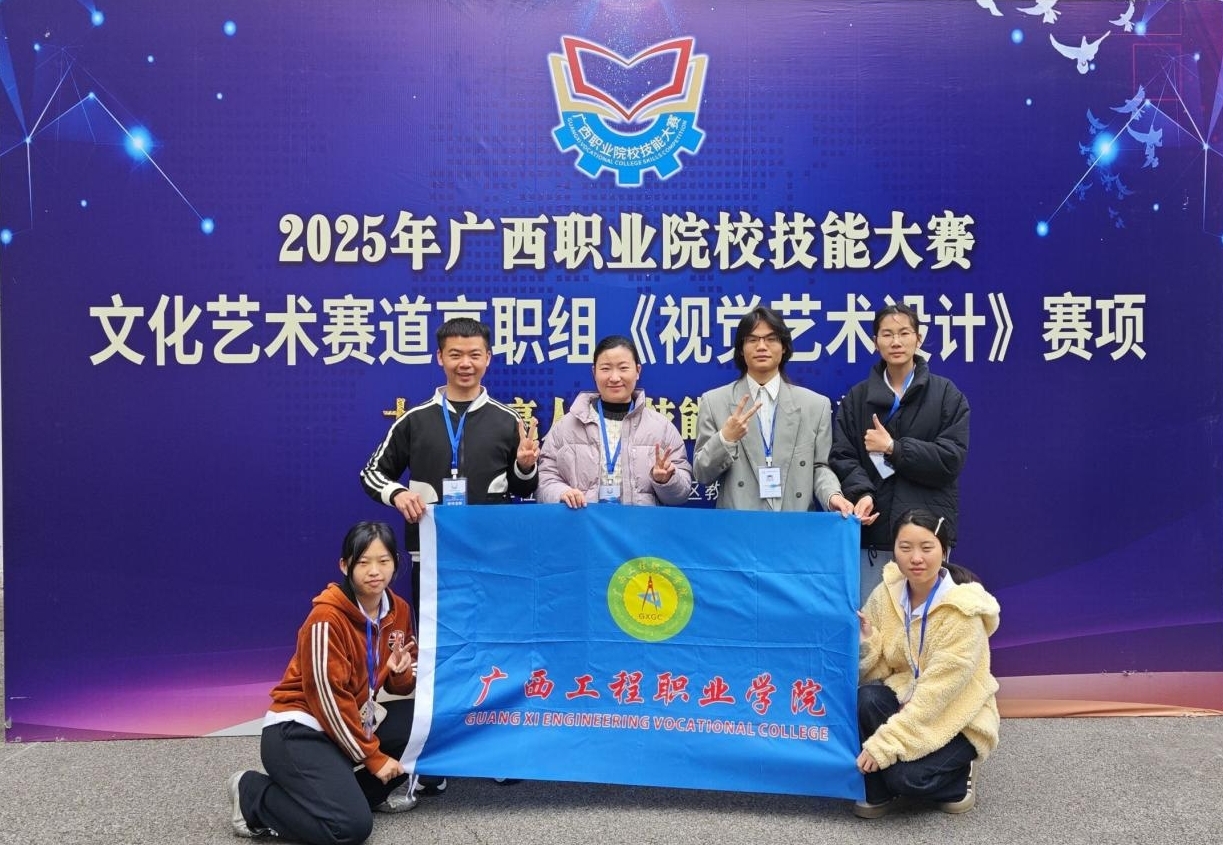 2025年3月15日—17日广西职业院校(高职组)视觉艺术设计技能比赛在柳州职业技术大学举办,共有32所职业院校45支代表队参赛。艺术设计学院刘梦霞老师和陈振斐老师带领广告艺术设计专业白义浪、李翠怡、侯亚婷、杨貌仙等4名同学参加了此次比赛。比赛分为两个模块,其中技能操作为55分钟,展示汇报为5分钟。