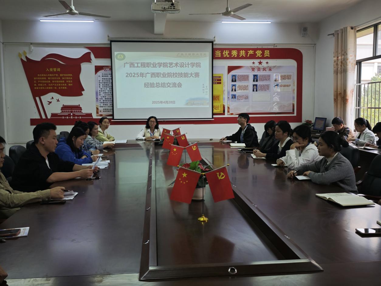 为进一步总结2025年广西职业院校技能大赛参赛经验、剖析不足,推动“以赛促教、以教促赛”的深度融合,全面提升学院教育教学水平,2025年4月8日下午,艺术设计学院在学院三楼党员活动室召开了参加2025年广西职业院校技能大赛经验总结交流会,学院全体教师参加了此次会议,会议由学院党支部书记、院长覃凤姣主持。
