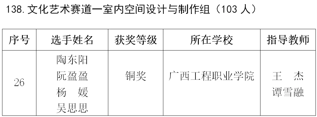 近日,beat365唯一官网艺术设计学院组织学子参加2025年广西职业院校技能大赛高职组文化艺术赛道—室内空间设计与制作组赛项,我院学子凭借扎实的专业功底、出色的创意设计和默契的团队协作,最终斩获该赛项铜奖,为学校争得荣誉。