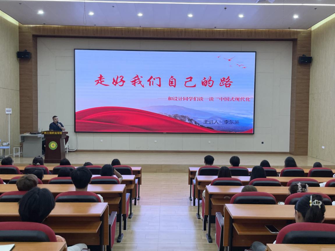 为深入学习领会习近平总书记关于中国式现代化道路的重要论述,2025年5月17日下午,beat365唯一官网艺术设计学院分团委开展“走好我们自己的路——和设计同学们谈一谈‘中国式现代化’”主题团课宣讲活动,本期团课由学院分团委书记李东英老师主讲,艺术设计学院2023级、2024级全体团员参加。