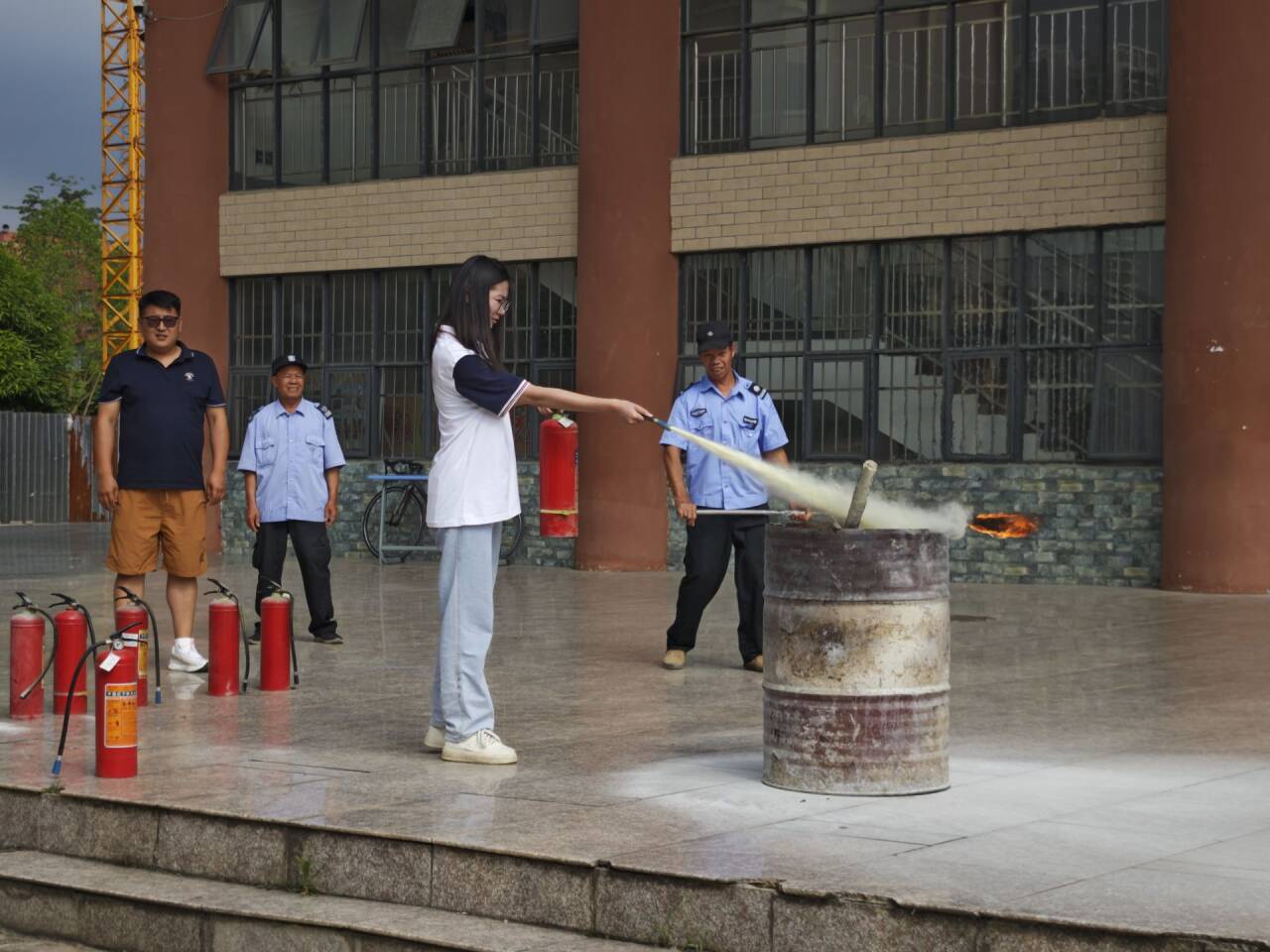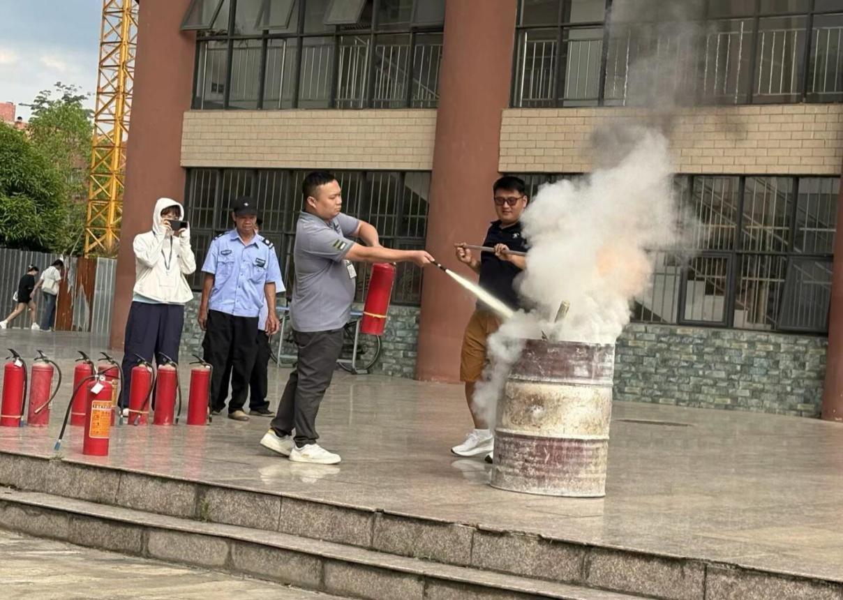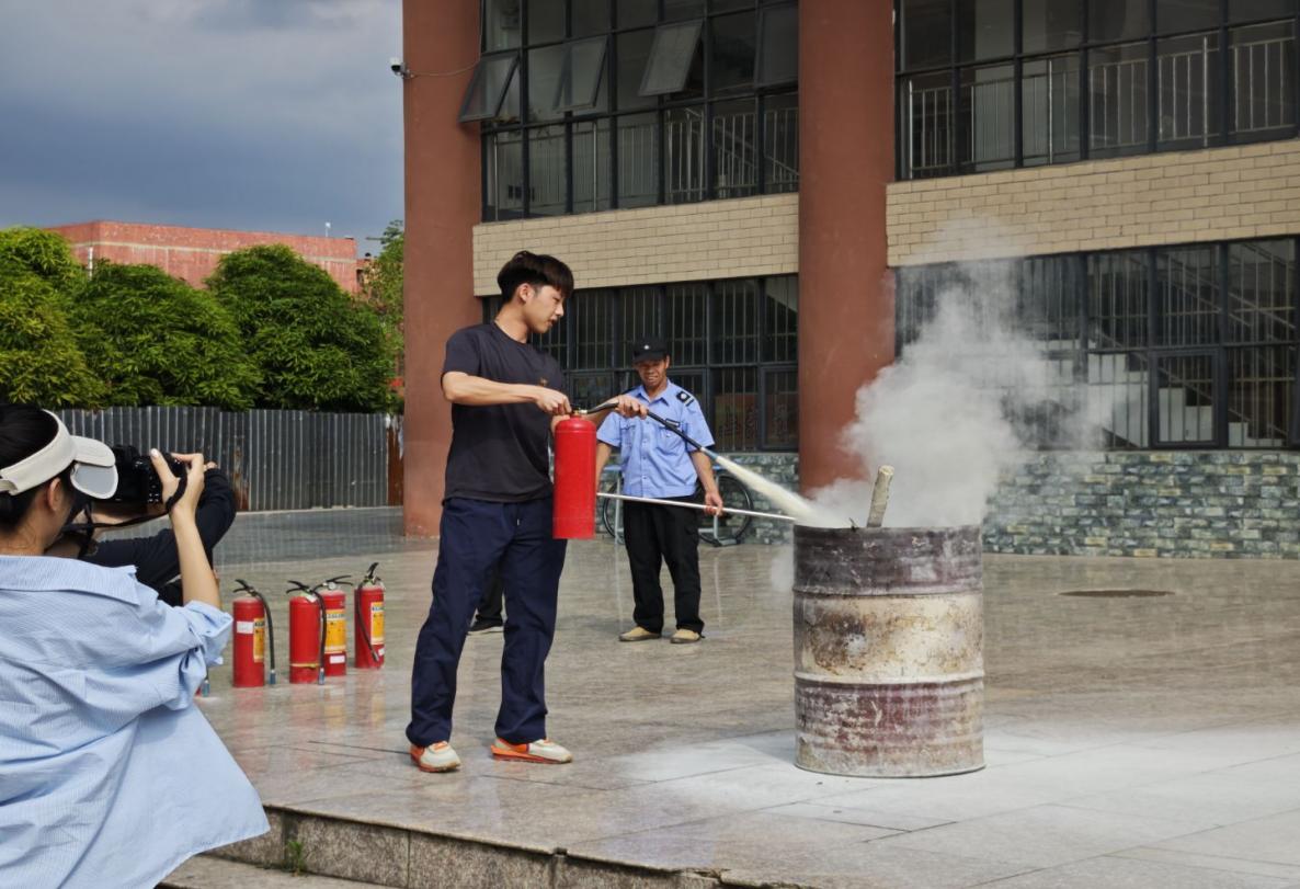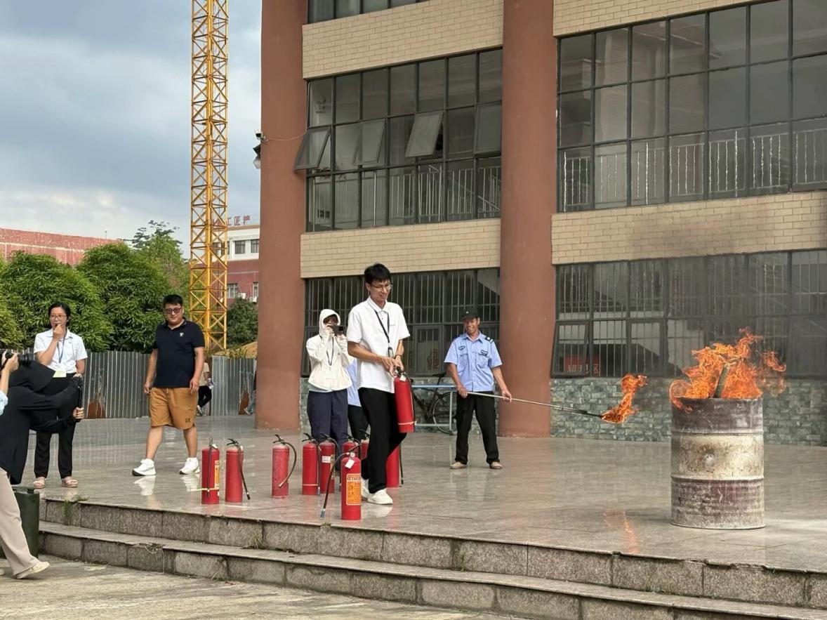 随后,师生们分组进行了灭火器实操演练。大家轮流操作灭火器,对准模拟火源进行扑灭,亲身实践所学技能,通过实际操作,师生们进一步熟悉了灭火器的使用技巧,增强了应对突发火灾的信心。