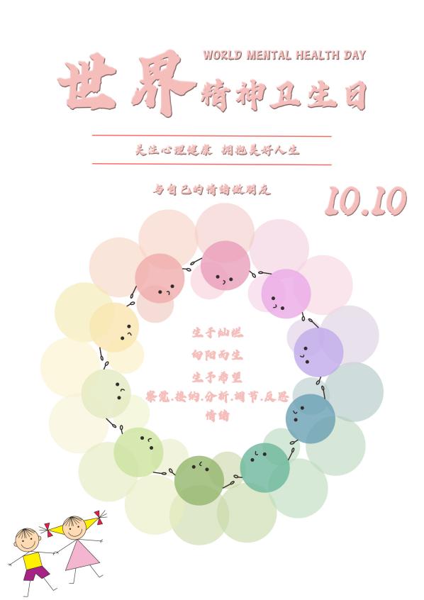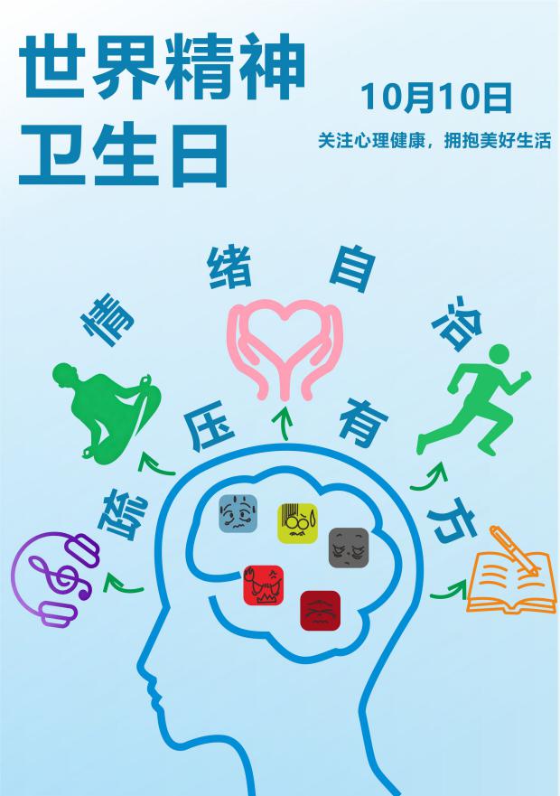 9月30日至10月10日,学生们发挥自己的专业能力,以世界精神卫生日为主题,绘制了相关主题的海报,在绘制海报的过程中,同学们增进了对世界精神卫生日的认知和了解,同时也理解了宣传心理健康知识的重要性。