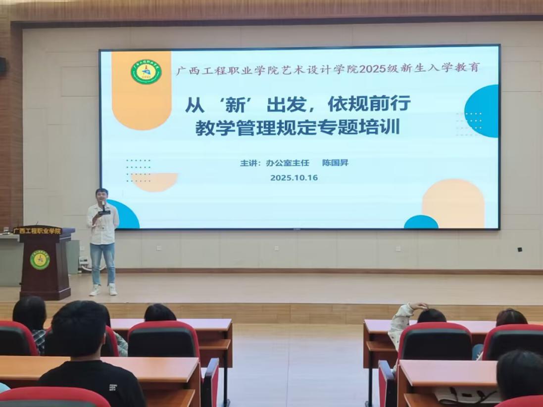 为帮助2025级新生尽快适应大学环境、树立远大理想、规范日常行为,艺术设计学院于2025年10月起组织开展了一系列内容丰富、形式多样的新生入学教育活动。本次入学教育围绕思想引领、安全教育、行为规范、心理健康、学业发展等多个方面展开,旨在引导新生扣好大学生涯的“第一粒扣子”。
