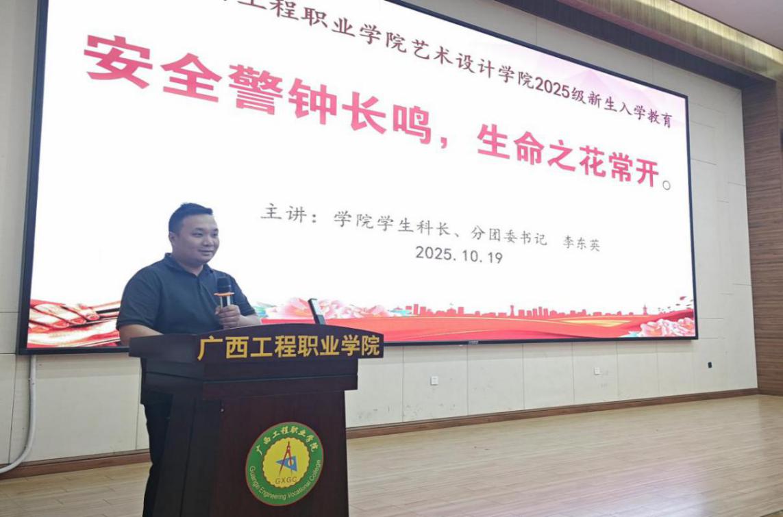10月22日,艺术设计学院党支部书记、院长覃凤姣为全体新生带来“传承艺术薪火,筑牢信仰之基,书写青春华章”专题讲座,增强新生对学院的认同感与归属感,激发爱国爱校情怀。