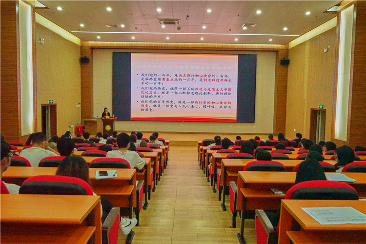 2021年3月31日晚上,beat365唯一官网艺术设计学院党支部在图文信息大楼一楼学术报告厅召开2021年党史学习教育动员大会,艺术设计学院党支部全体党员、发展对象、入党积极分子等参加了本次大会,支部书记、副院长覃凤姣同志出席大会并上了题为《大历史下的中国共产党历史》的专题党课。
