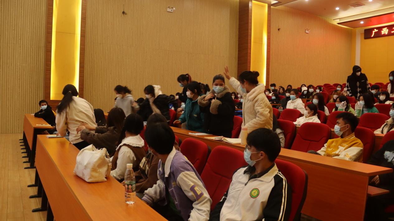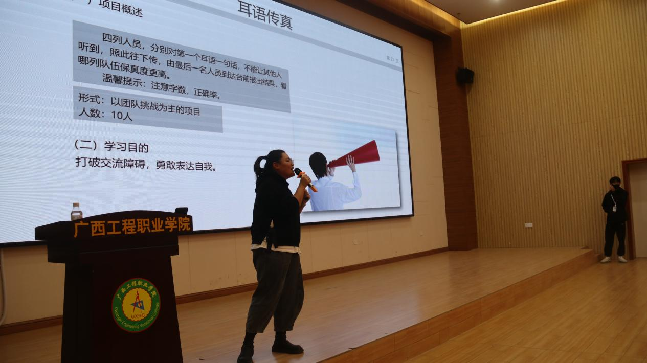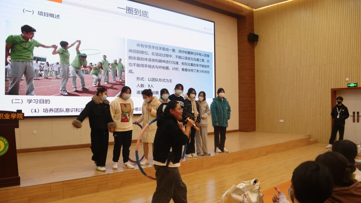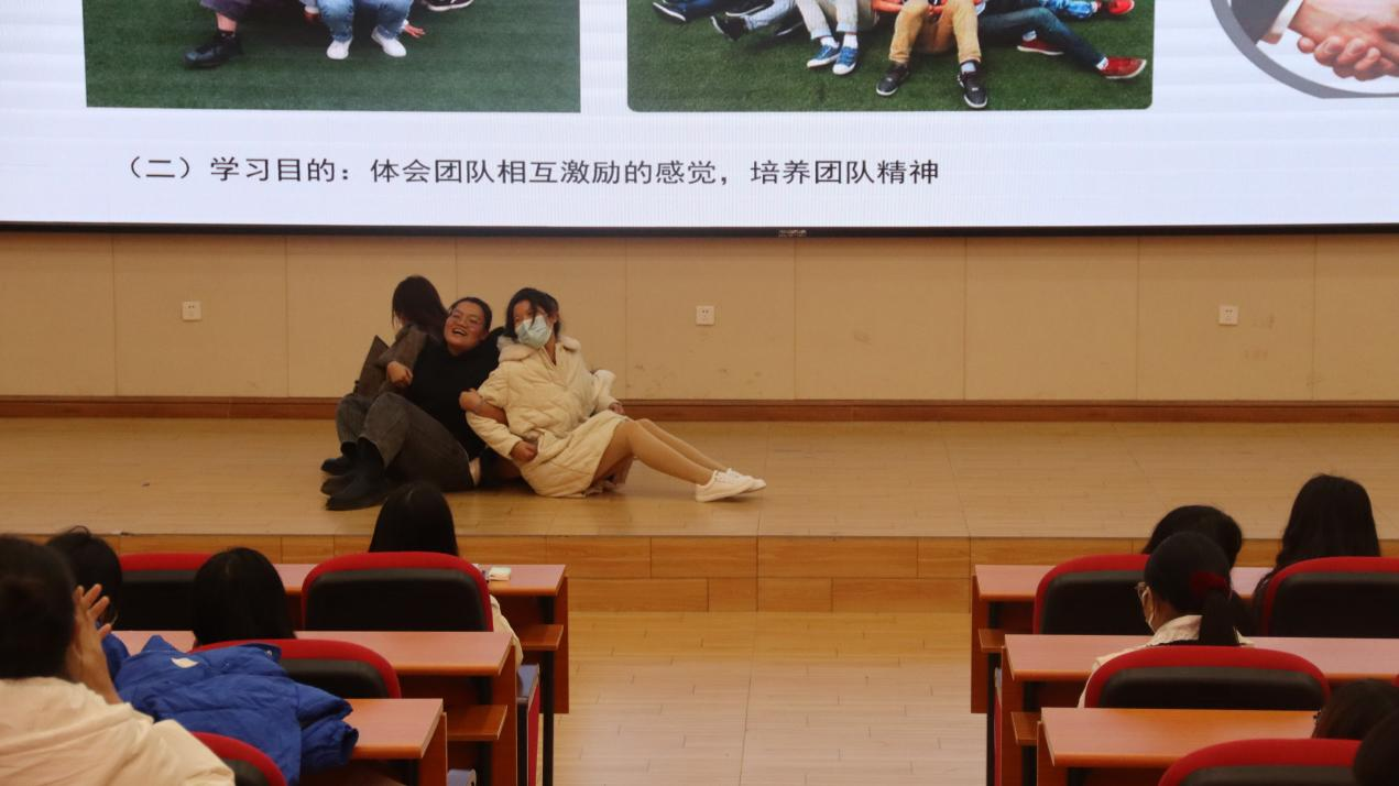 在第三堂课上,陆闲老师就大学生素质扩展提升方面展开教育,目的是重视团队合作,激发团队每一位成员的潜能,集合团队的力量才是最终的胜利,为此,陆闲老师还特地准备了几个游戏锻炼学员们的合作能力。