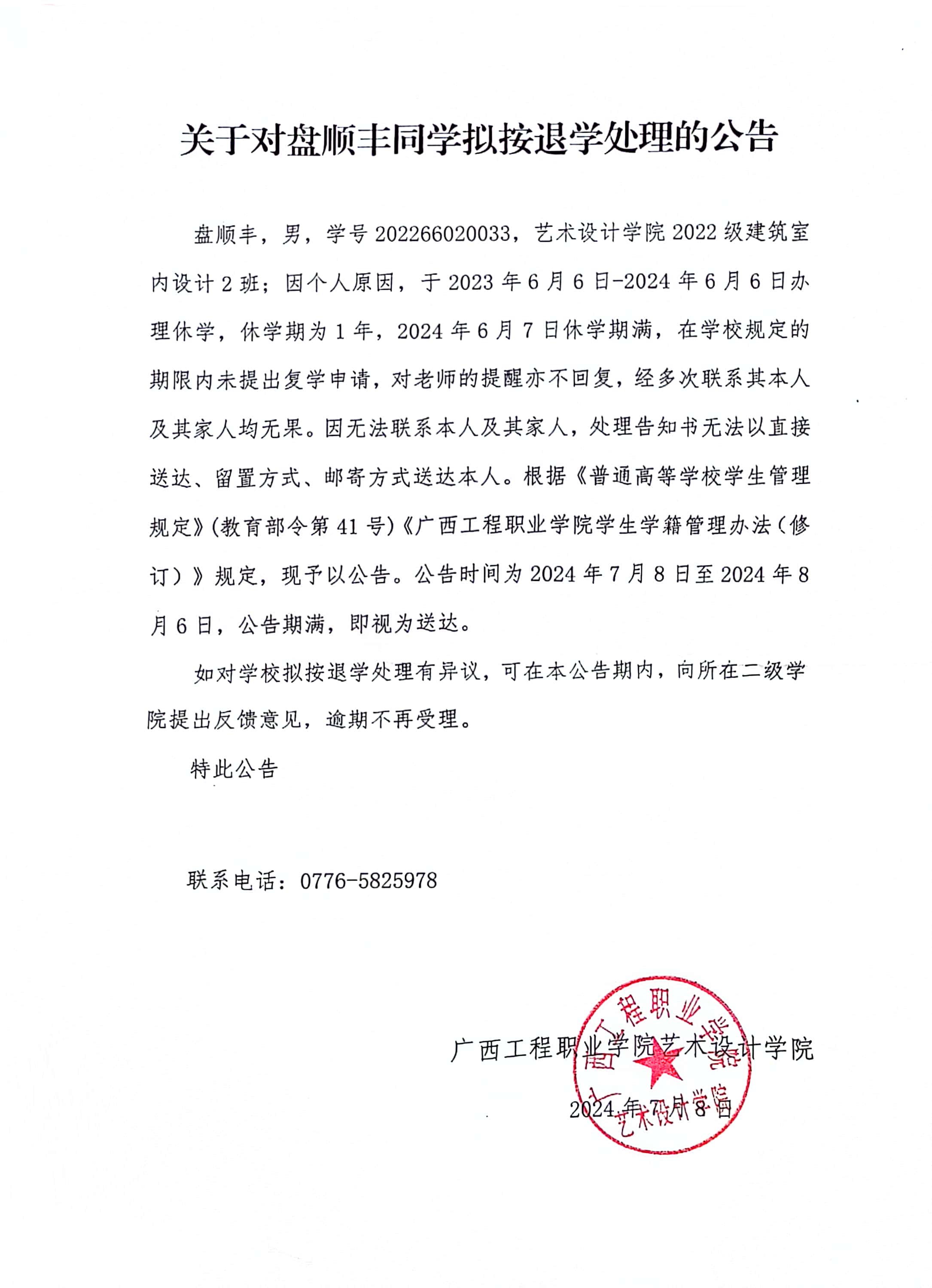 下一篇:关于对杨家辉同学拟按退学处理的公告