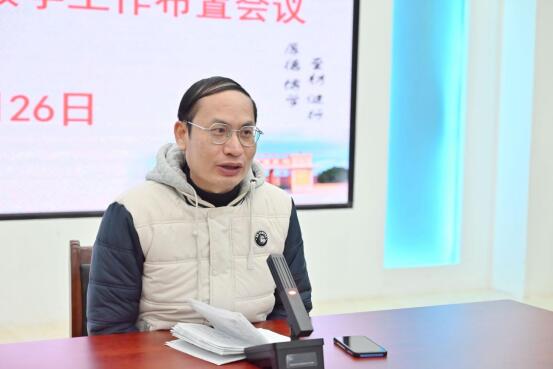 黄德伟副校长就深入做好2024年春季学期开学教学工作进行了强调。第一,教务处要不断完善课表,充分发挥教师的能力,合理利用我们学校的教师资源,保证我们的学生每天有课上。第二,各教学单位负责人全面贯彻落实教师学习相关教学文件的任务,认真备课。给学生一杯水,我们要有一桶水,教师要上好每一堂课。第三,网电中心要对我们教室的多媒体设备进行检查维护,发现问题立即维修,上课铃声必须与北京时间同步,进一步保障教学活动顺利展开。第四,各二级学院相关负责人落实教室卫生工作,及时打扫教室卫生,保证我们的学生有一个干净、舒适的学习环境。
