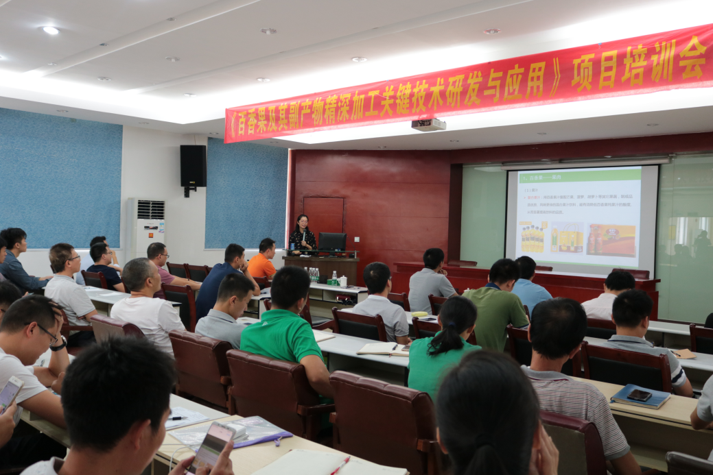 ▲辛明在相关企业开展百香果保鲜及深加工技术培训