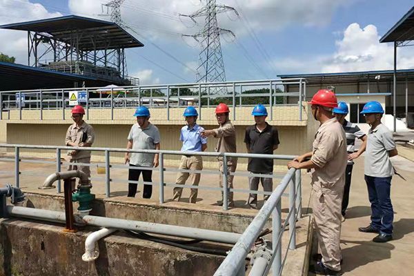 韦国柱(左二、红帽)指导污水处理中心技改亮化工程