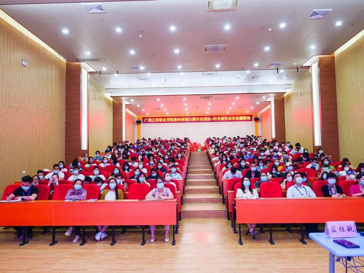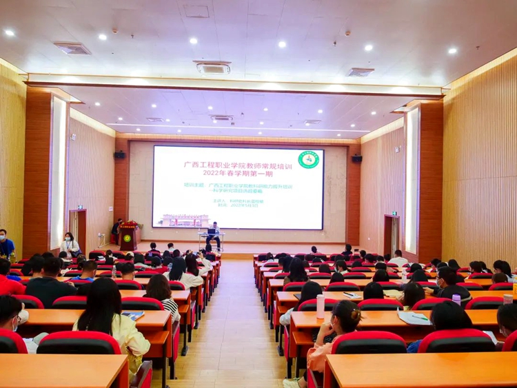 2022年5月3日,第一期专题培训在图文信息大楼报告厅举行,学校科研处蓝桂敏科长作教科研能力提升专题培训。