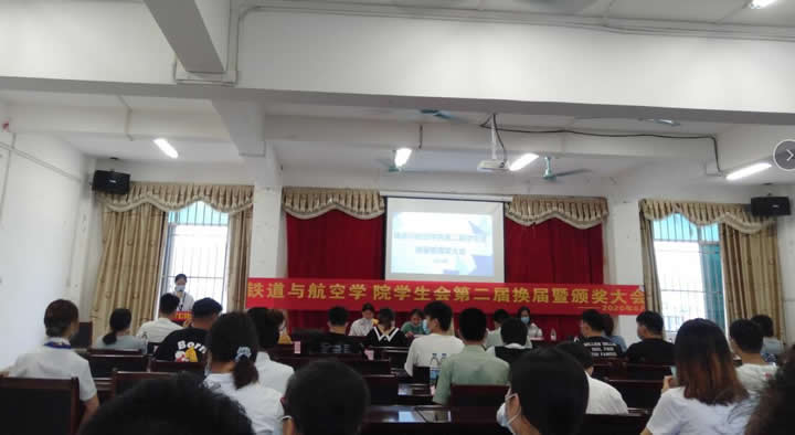 在这个夏日炎炎的七月初,怀着感恩与不舍,2020年7月3日晚,铁道与航空学院学生会在办公楼四楼大会议室举行我院学生会第二届换届暨颁奖大会,出席大会的有学校党委委员、副校长彭高彬老师、铁道与航空学院副院长覃清香老师、铁道与航空学院分团委书记陆闲老师,土木工程学院分团委书记陈春任老师、国防科技学院办公室主任黄妮老师、教育学院分团委书记谢安妮老师以及铁道学院各年级辅导员老师和各个二级学院学生会代表、社团代表。