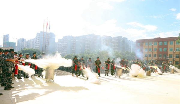 教官对本次逃生疏散演练进行了点评,要求同学们要加强对安全知识的学习与运用,时刻保持防灾意识,高度重视应急安全。教官还现场讲解了灭火器的使用方法,并组织新生分批进行灭火器的使用演练,力求在实践中掌握消防安全知识。