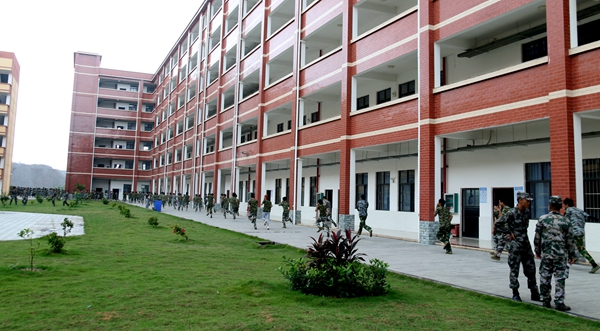15点整,随着警报声响起,同学们严格按照要求疏散,用军训帽(湿毛巾)捂住口鼻自觉排成纵队,从各楼层的4个楼梯出口迅速有序的撤离教室,且低楼层的同学先有序撤离。最后全员全部撤离教学楼抵达指定场地(鲁班广场)。在疏散过程中没有发生拥挤、推搡、踩踏和碰伤事故,全程井然有序。