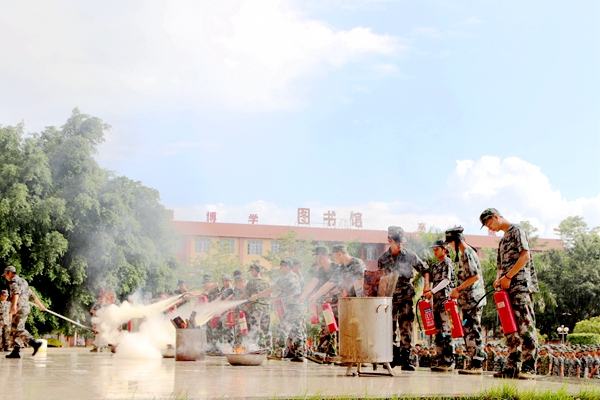 教官现场指导学生如何使用灭火器灭火