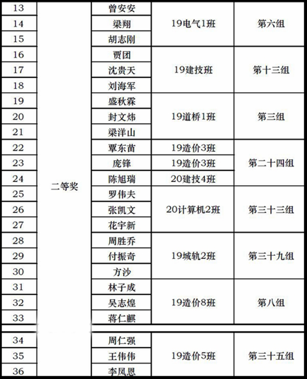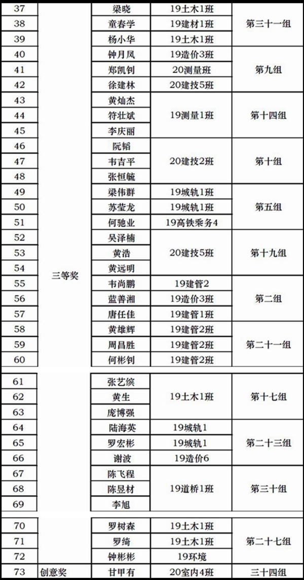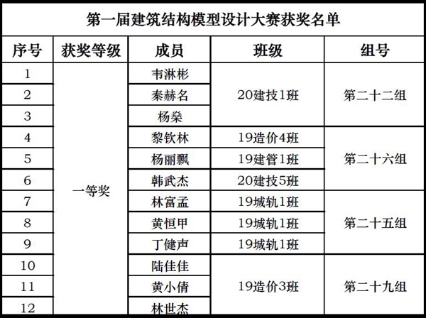 附:第一届建筑结构模型设计大赛获奖名单
