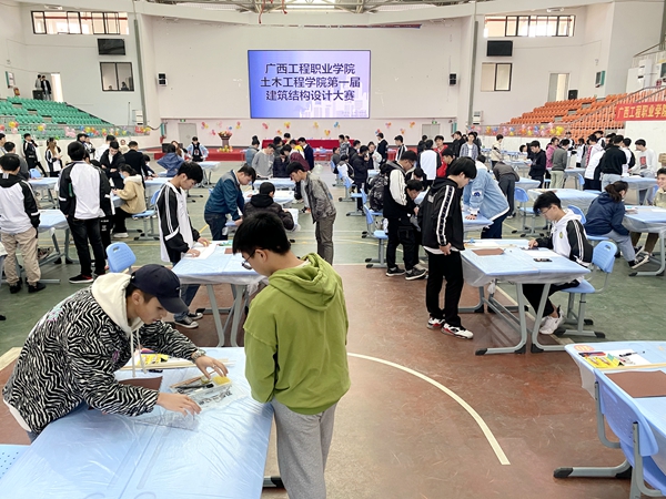 土木工程学院副院长彭家官宣布比赛开始,第一届结构模型设计大赛紧张而有序开展。各参赛团队根据比赛规则,运用规定材质,在限定的时间里,通力合作,大胆创新,激发设计灵感,熟练而快速地制作建筑结构模型。