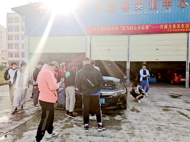 为进一步弘扬志愿服务精神,扎实推进党史学习教育“我为群众办实事”实践活动,把学党史与强化专业特色结合起来, 将党史学习教育成果切实落实到实际工作中,为师生办实事、解难题,营造文明和谐的校园。2021年12月2日,汽车与机电学院举行“我为师生办实事”义务洗车志愿服务活动,为学校师生免费洗车。