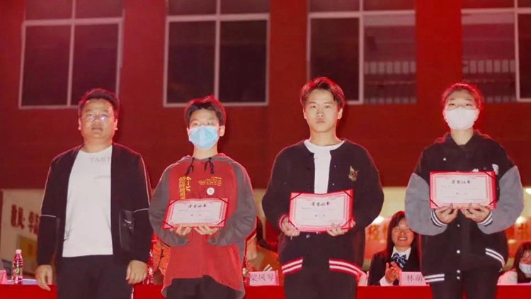 校校团书记委梁凤琴为获得三等奖的学生代表颁奖