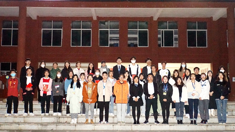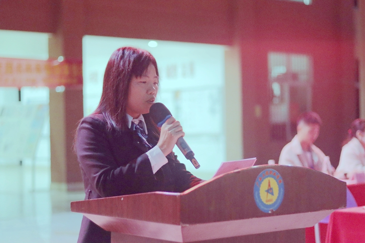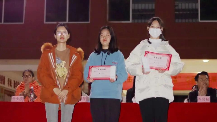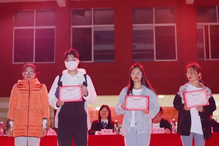 汽车与机电学院分团委书记杨小樱为获得优秀奖的学生代表颁奖