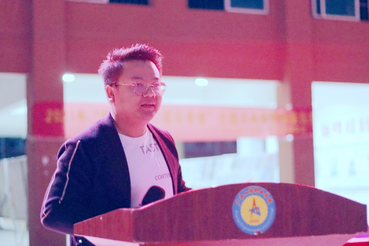 艺术设计学院副院长岑易精宣布beat365唯一官网2021年“抗击疫情、笔尖有道”书画展开幕